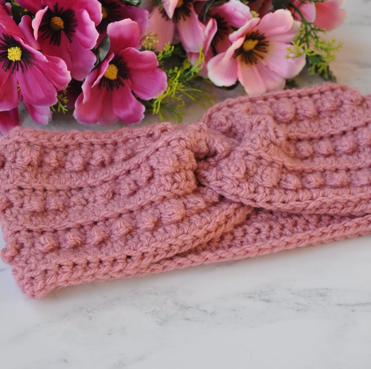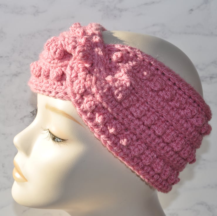 I have hand crocheted this lovely ladies twisted earwarmer head band using a beautiful yarn in a gorgeous colour palette of dusky rose pink.