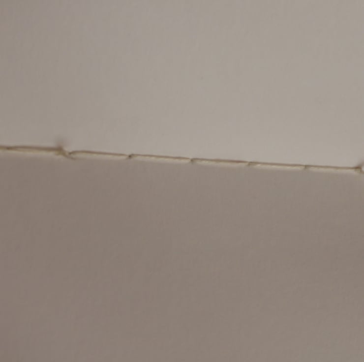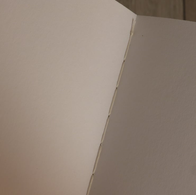 PAPER: The notebook is made up of 20 pages, 40 sides, of 120gsm fine grain paper suitable for pencil, charcoal and ink and is hand bound with a natural linen waxed thread chain stitch on the spine.