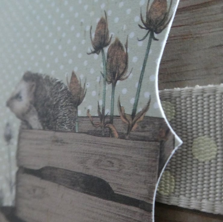 The message and the hedgehog picture have been raised up slightly from the background to give more interest and dimension.