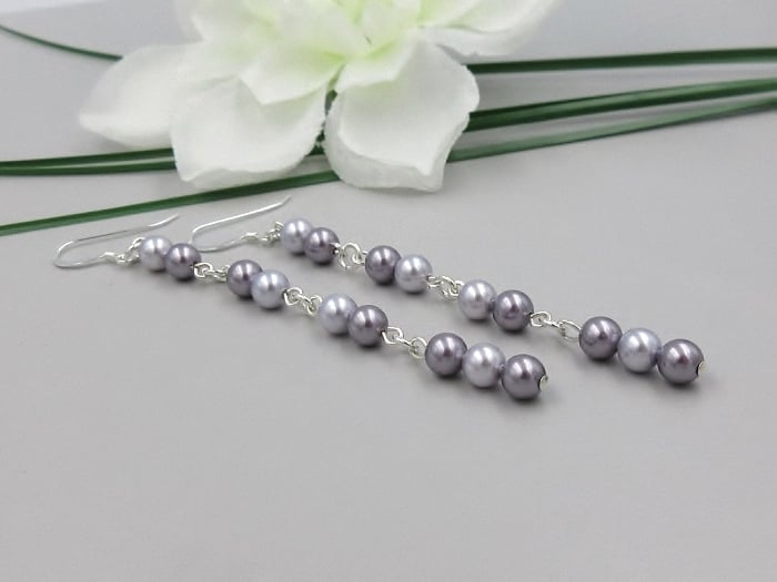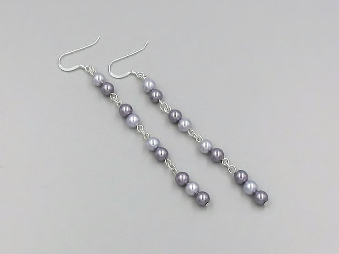For these 78mm long earrings I chose 2 shades of purple pearls from the world famous crystal company in Austria.