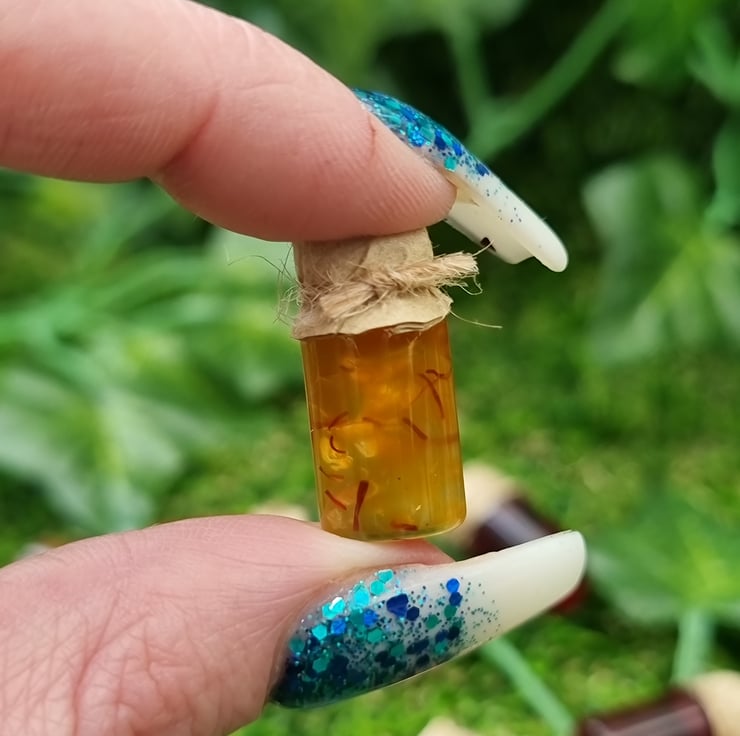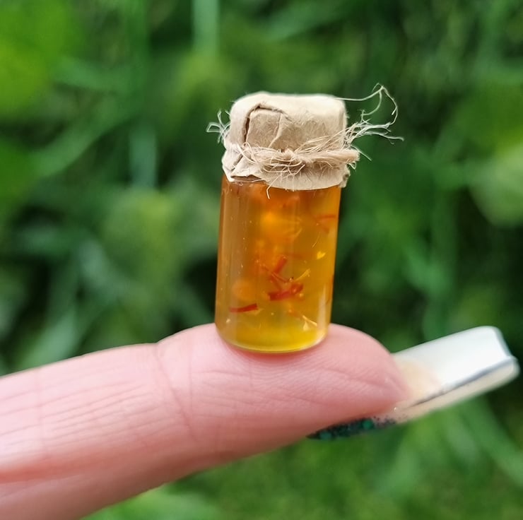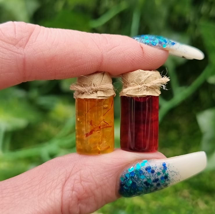 Looking for some cute additions to your miniature kitchen? Check out these gorgeous miniature jars just waiting to stock your dolls house kitchen or shop. Created using resin, floral colourant and recycled plastic bits, these jars make tiny, realistic jam and marmalade jars. The jar of marmalade also incorporates natural materials- teeny shreds of saffron spice to look like orange peel! Each jar is topped with recycled brown paper and tied with jute string. Each tiny jar is handcrafted to recreate a tiny preserve jar in miniature. Sold individually.