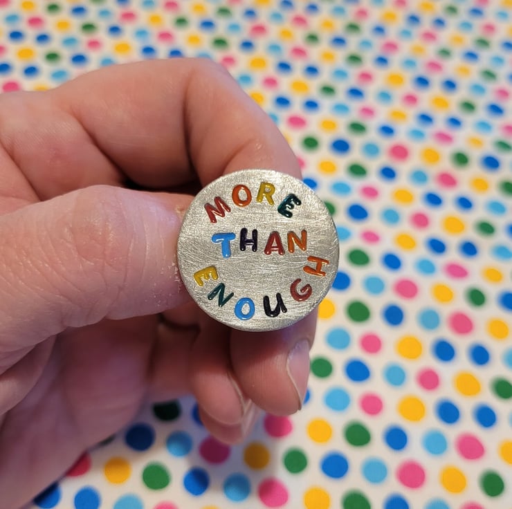 It made sense to develop my own range of Positivity Badges with colourful encouraging messages stamped into pewter that you can pin onto your coat or bag or gift to your friends when they need a wee boost!