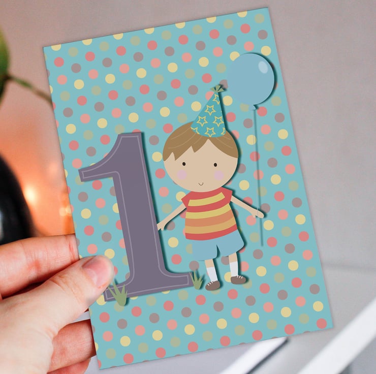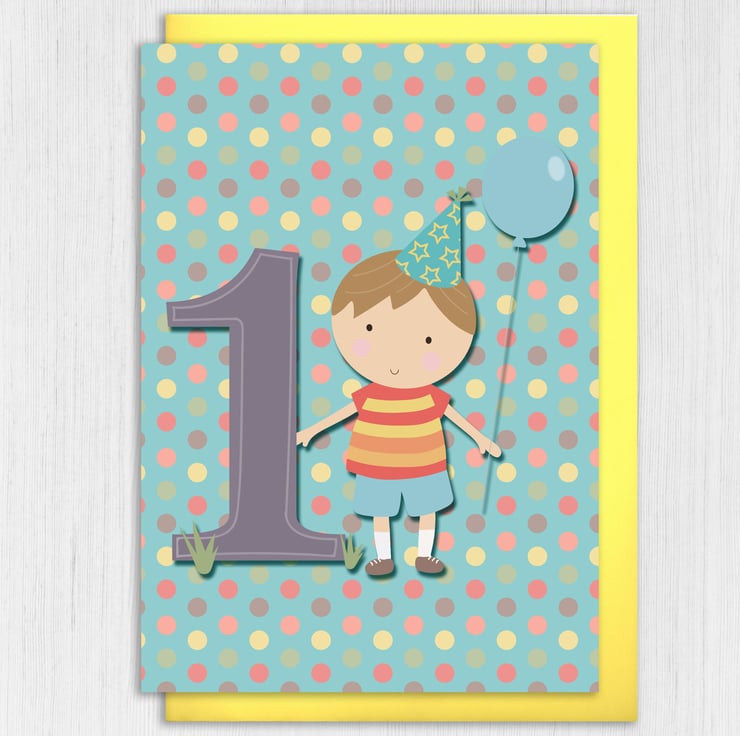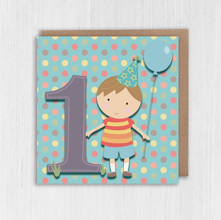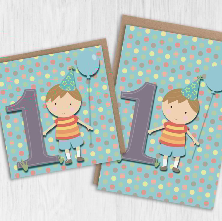 Boy's, children's, kid's, child's 1st birthday card (Size A6/A5/A4/Square 6x6")