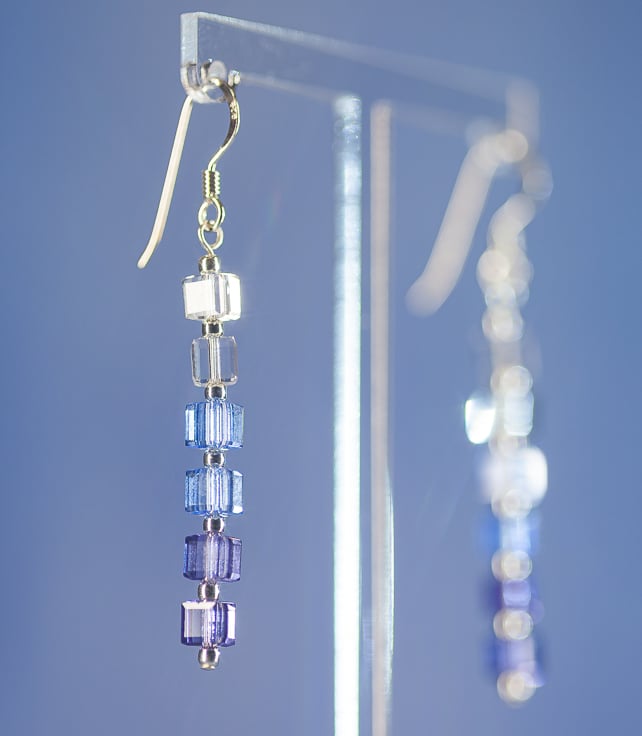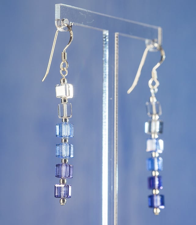 We have made these drop earrings with sparkly Swarovski 4mm cubes and sterling silver beads/ear wires.