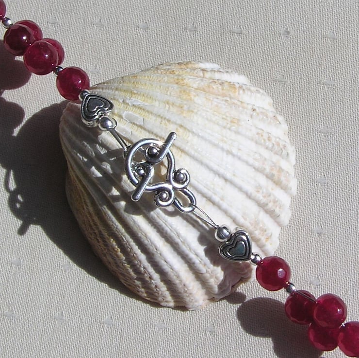 This Stunning Necklace is made wholly from Natural Pink Ruby faceted round beads clustered together in four's and for that added bit of sparkle tiny Silver spacer beads - a Gorgeous Regal rich mix that will look stunning either worn casually or with something more Elegant for a Special Evening out