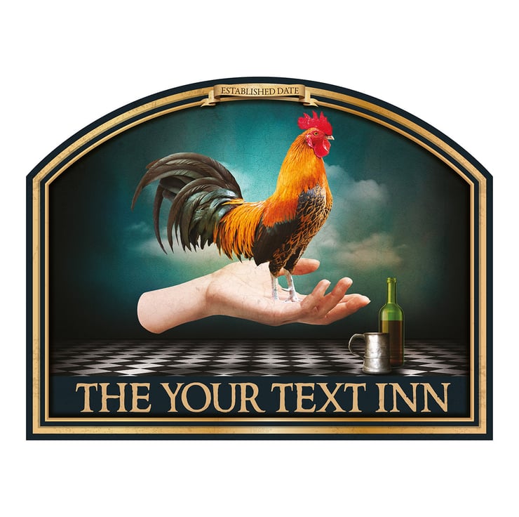 A cockerel stood on a hand in the style of the renowned artist Hieronymus Bosch.