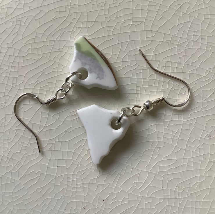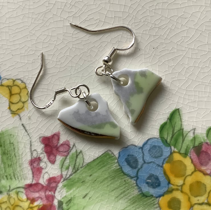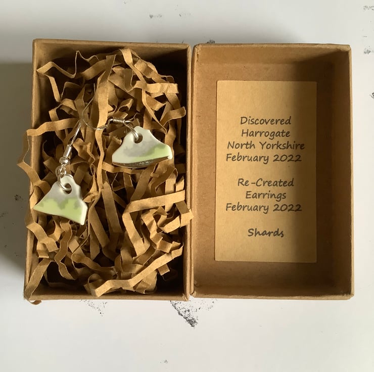Hand crafted Jewellery and framed artworks using pre loved and discarded ceramics. Ceramic material will show signs of wear and damage. Entire process is a creative experience from discovery to final picture, nothing planned or preconceived. All materials personally collected from river banks, charity shops, roadside, woods, recycle centres, beaches, wherever dropped, dumped or donated ceramics are found, cleaned and shaped into new stories. Each titled piece comes with a short bio of where the ceramic came from, known history, original information and when the artwork was created. Some ceramics collected are used as found, while others are cut randomly which will shape the final picture. Every piece is individual, nothing replicated, however, due to repetitive patterns in ceramics there will be some similarity but only through the ceramic material not in the final piece.