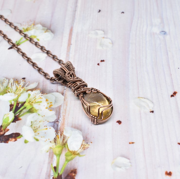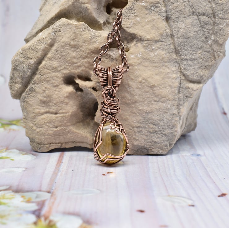 I have used solid copper wire to wrap and weave around this beautiful stone .
