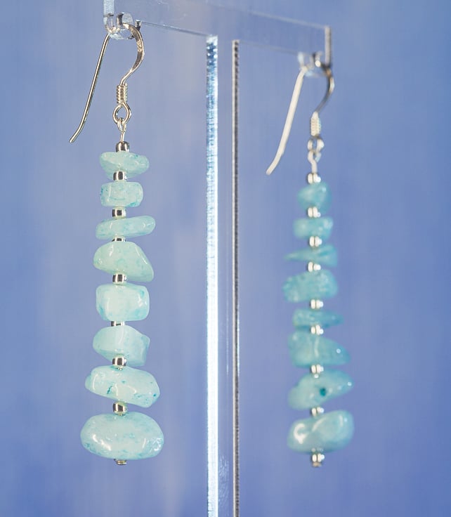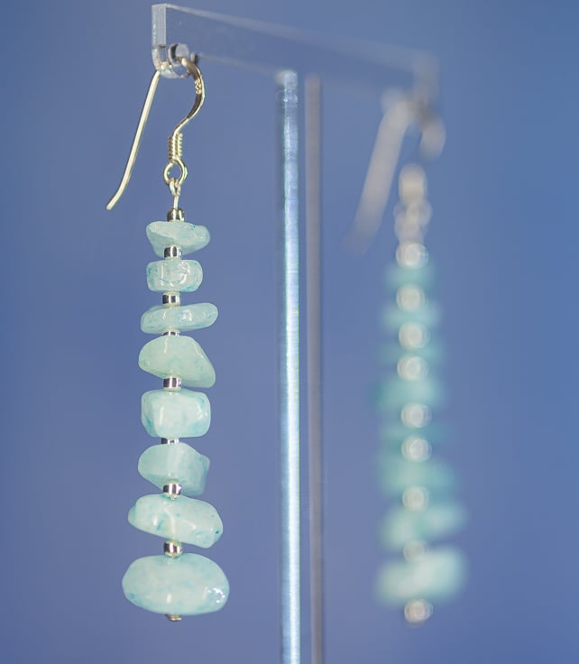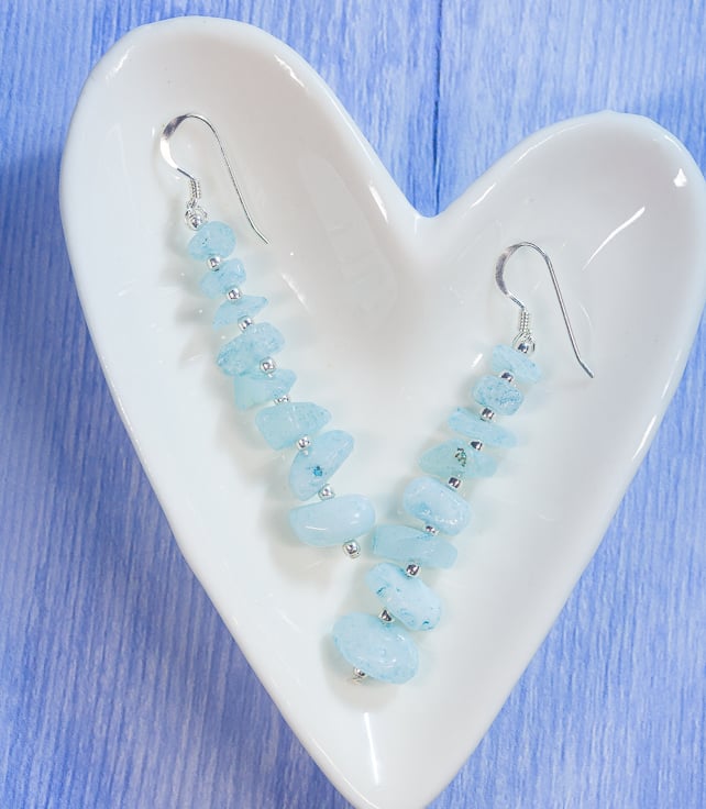 We made these dangle/drop earrings using blue morganite chips (which range in size from 4-8mm).