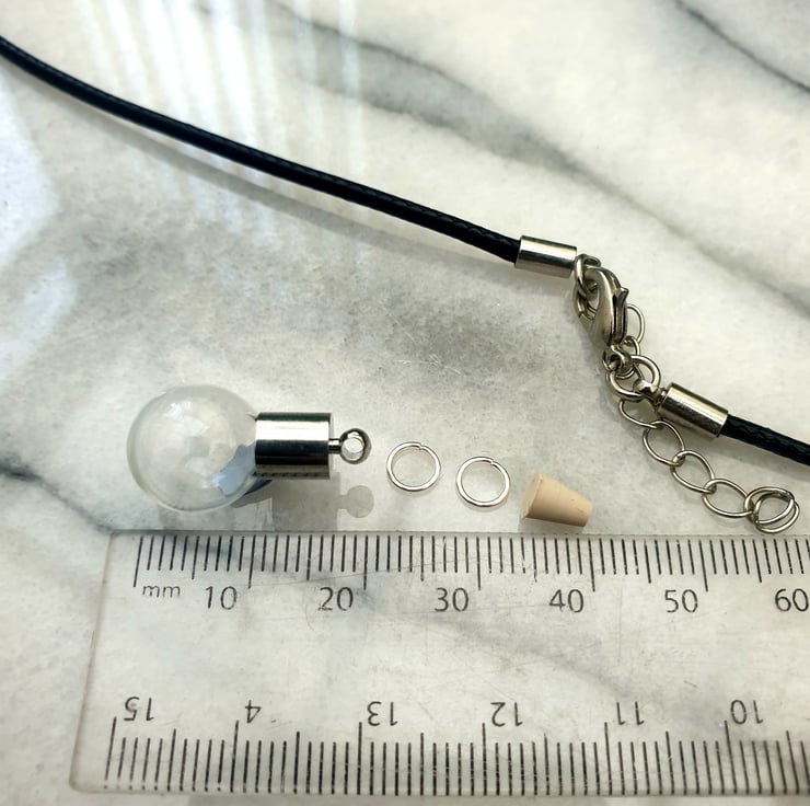 Feeling creative? Want to add your own filling to a miniature glass vial? Then this is the perfect jewellery kit for you!