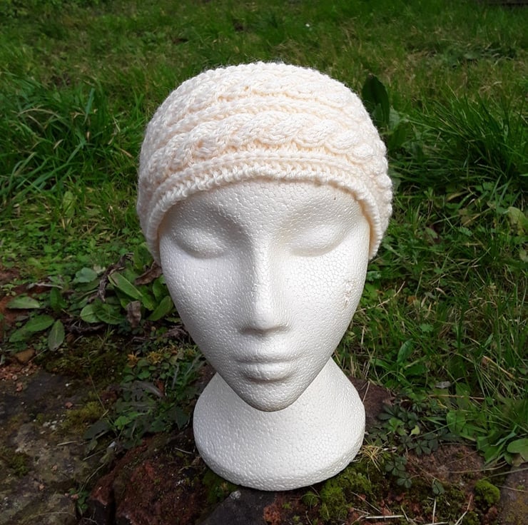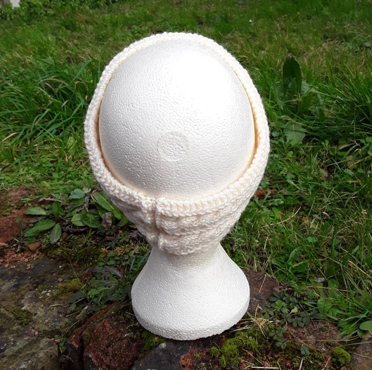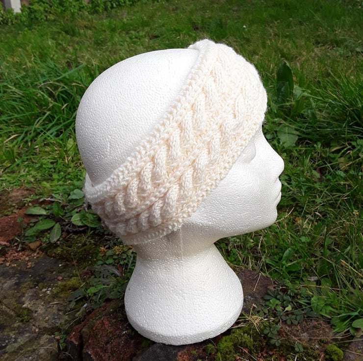 The earwarmer has been knitted by hand and has two rope cables around the headband. Made from 100% wool, it is ideal for those who don't like to wear a hat but want to keep their ears warm and possibly their hair in place. Use on the school run, dog walks or when nipping to the shop. Look stylish whilst staying warm.