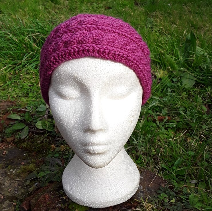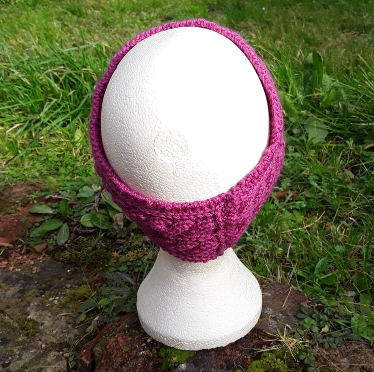 The earwarmer has been knitted by hand and has two rope cables around the headband. Made from 100% wool, it is ideal for those who don't like to wear a hat but want to keep their ears warm and possibly their hair in place. Use on the school run, dog walks or when nipping to the shop. Look stylish whilst staying warm.