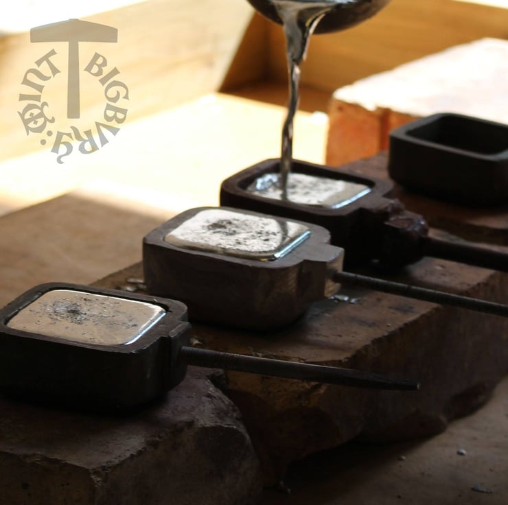 This project arose out of a collaboration between Matthew Holland and Barry Gamble. Matthew's sister Lisa helped with the production process. She said "I loved melting the ingots for the paperweights! It was smelly and smokey work as all the debris burnt off, but when the molten tin was skimmed it was simply beautiful. Pouring them was quite tricky as they had to weigh exactly one pound in weight".