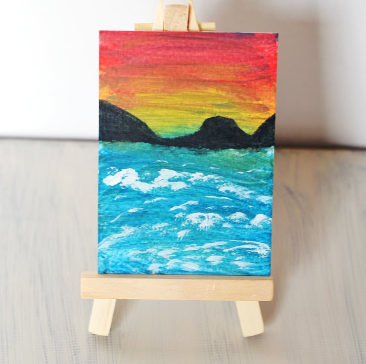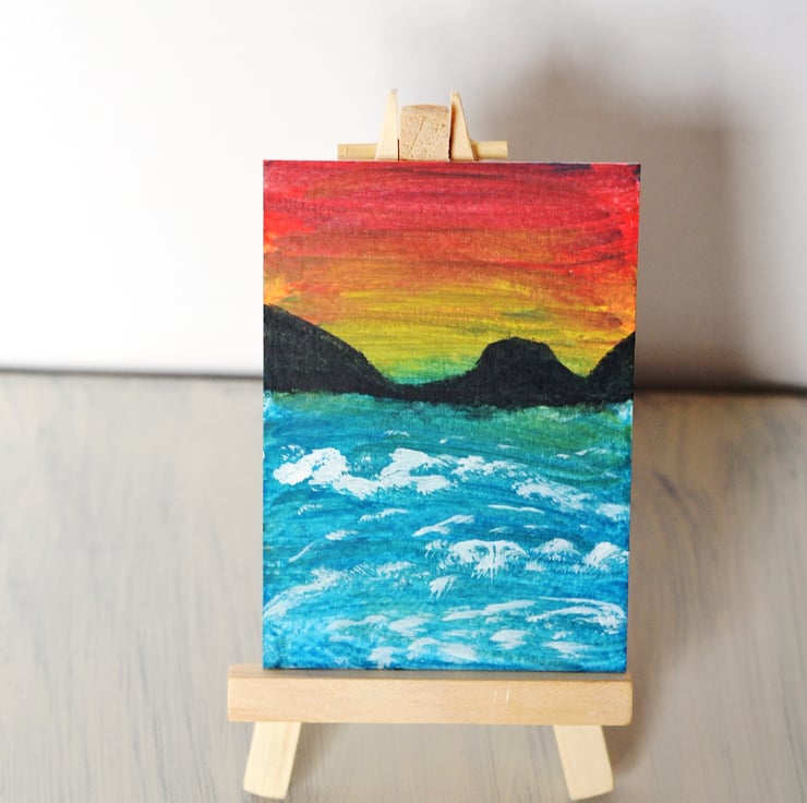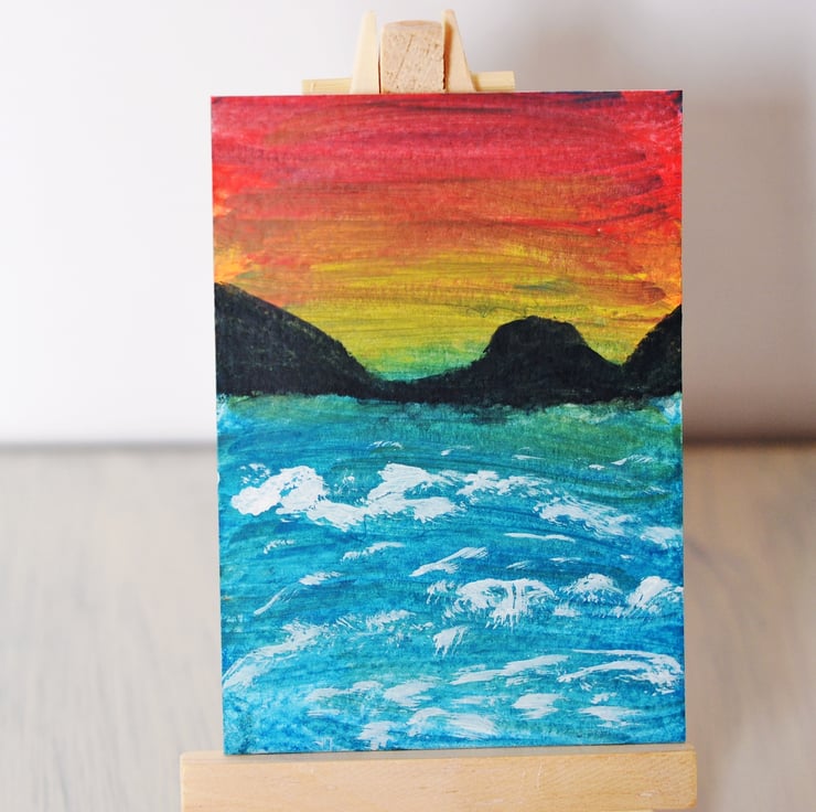 Aceo watercolour painting .Painted on quality watercolour card. Painted using quality inktense watercolour paints and acrylics. Size is 3.5" x 2.5" - Stunning colours will look lovely mounted and framed. Keep out of direct sunlight due to fading and away from water.I am adding new paintings each week. I can mount it an ivory mount for £1.50.