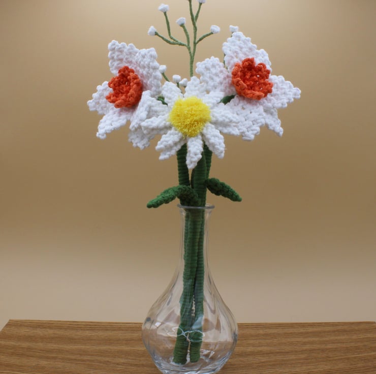 The daffodils stand approximately 33cm tall with a flower head span of about 11cm. As each flower is individually made by hand, the measurement may vary slightly.