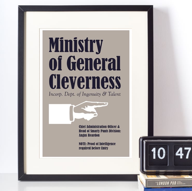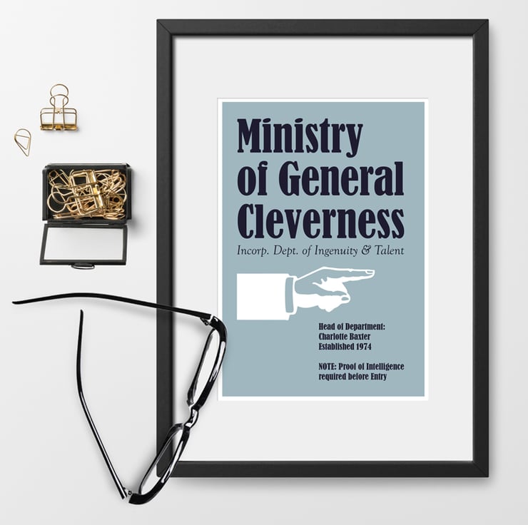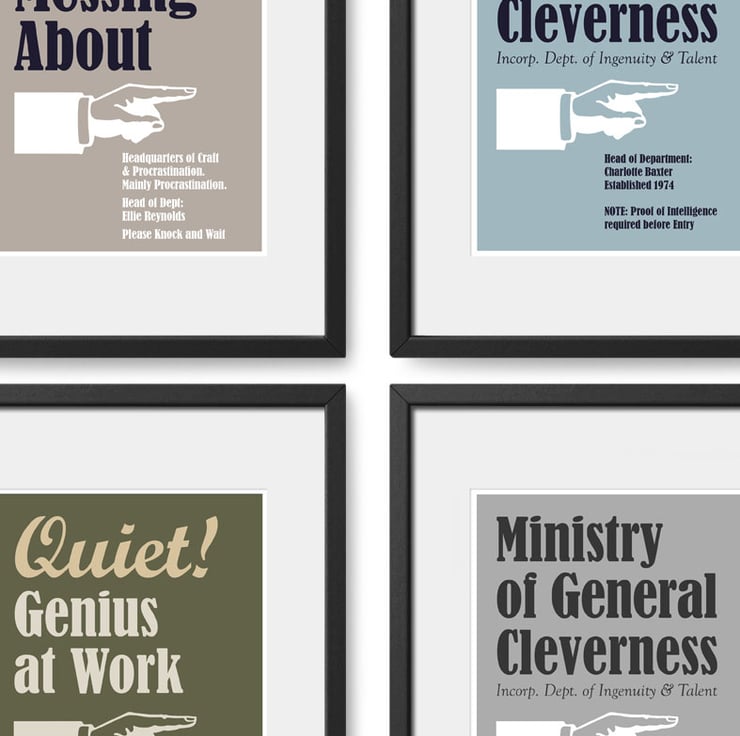 This fun personalised print makes a brilliant finishing touch for a home office or craft room, but also works perfectly for a gift too. An ideal graduation gift or a wonderful gift for a friend starting their own business too. The print has a distinctive vintage feel and is personalised with your own wording and is available in a choice of 4 colours: