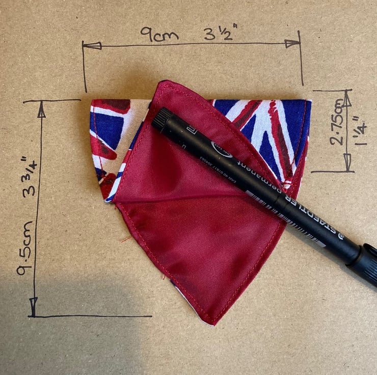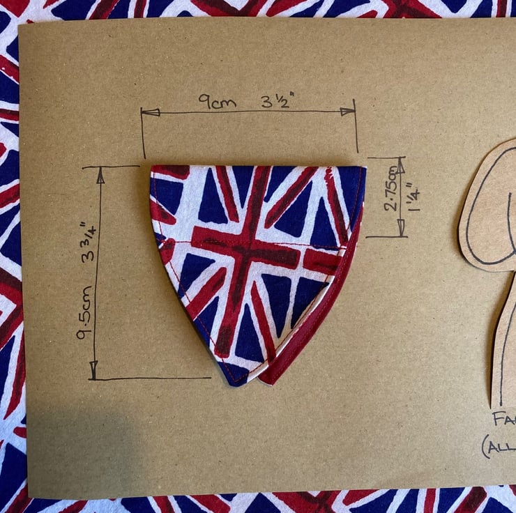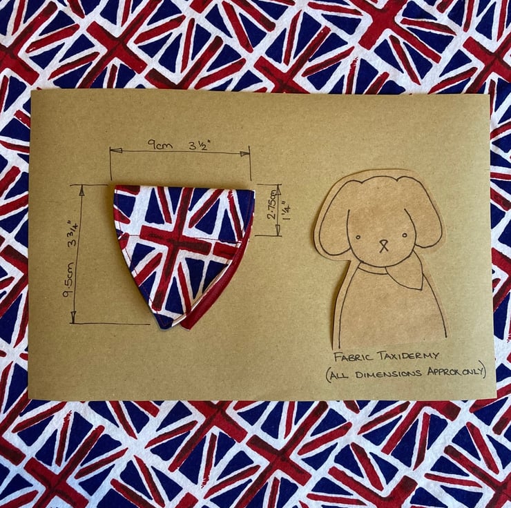 Get your pooch ready to celebrate the Jubilee with this handmade bandanna. Simply slips onto your dogs collar and can be easily washed at 30deg, line dry. Overall sizes shown on photo and width of sleeve, which the collar slides through.