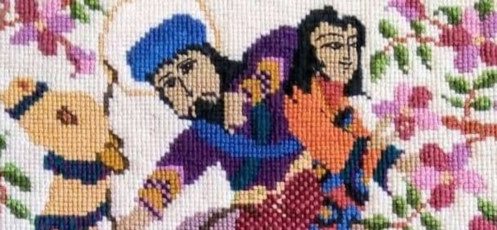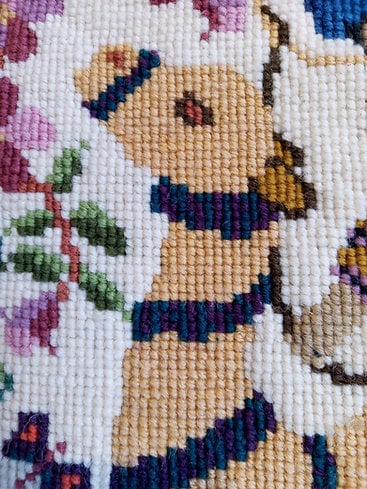 Sewn using Victorian cross stitch, no need for a frame.