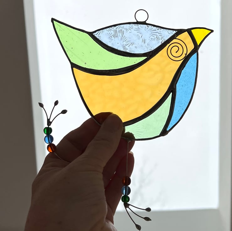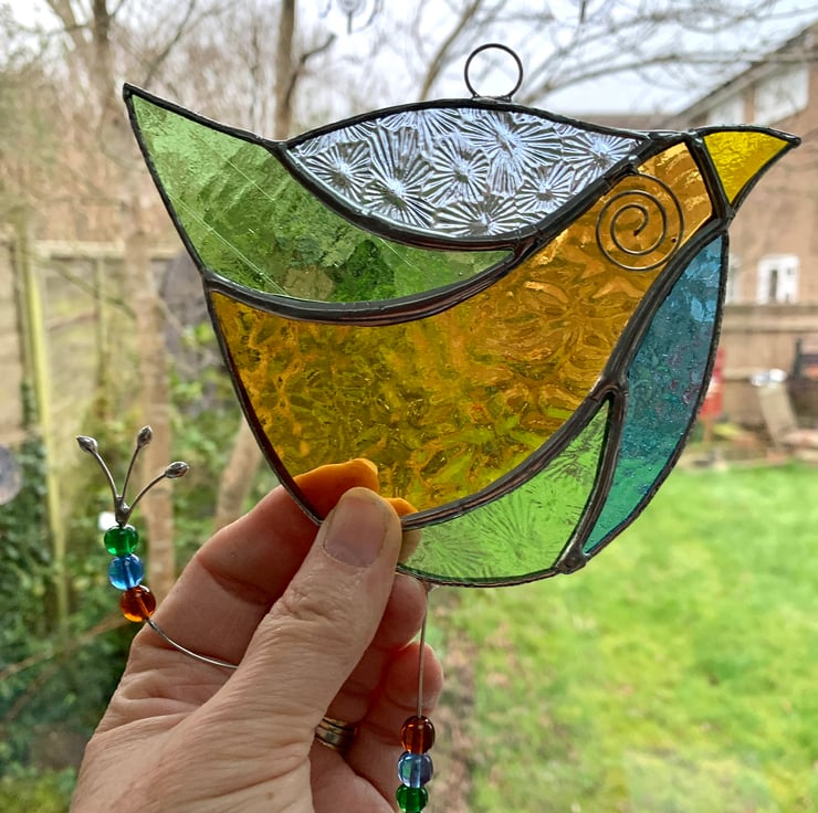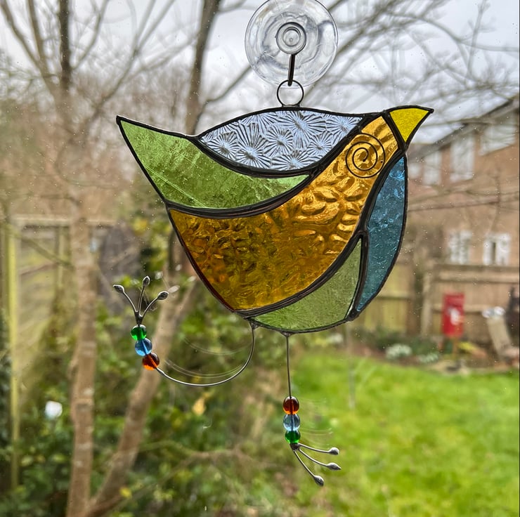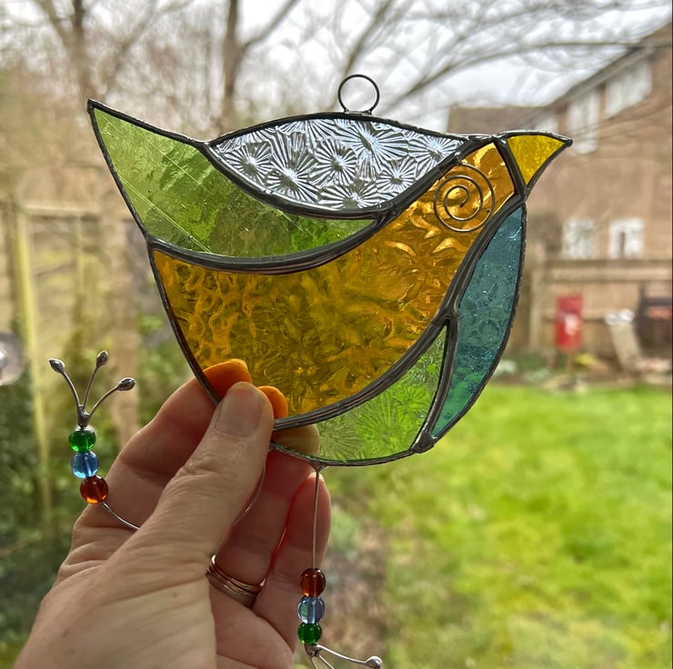 Here is a fun bird suncatcher made out of beautifully coloured stained glass. It’s really quite quirky and fun making a great gift for all ages.