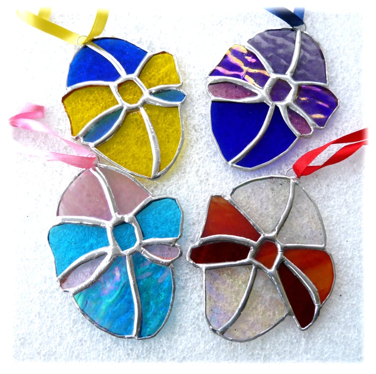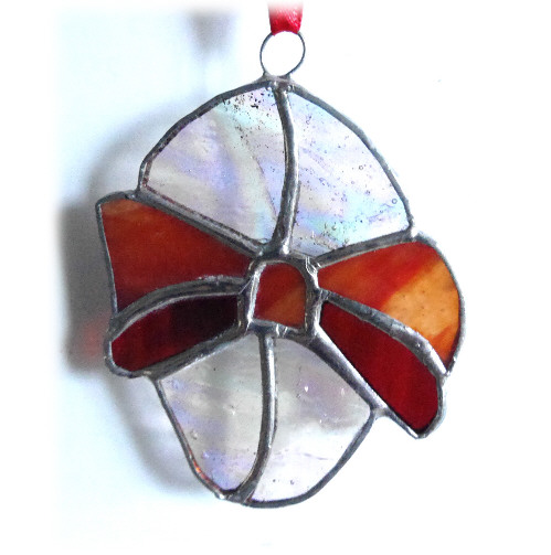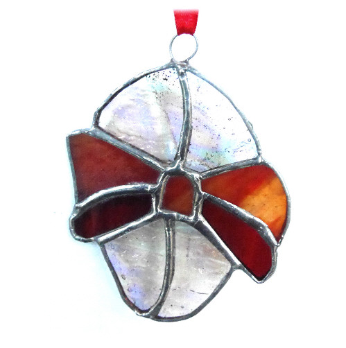 This is a stained glass suncatcher handmade using the Tiffany copper foil technique.