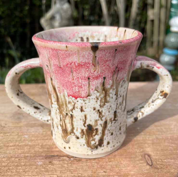 Having heard that most accessibility cups were plastic sippy cups, I designed these double handled mugs as a pottery alternative.