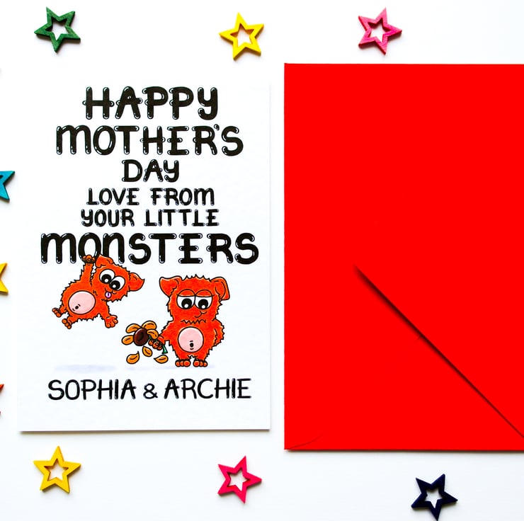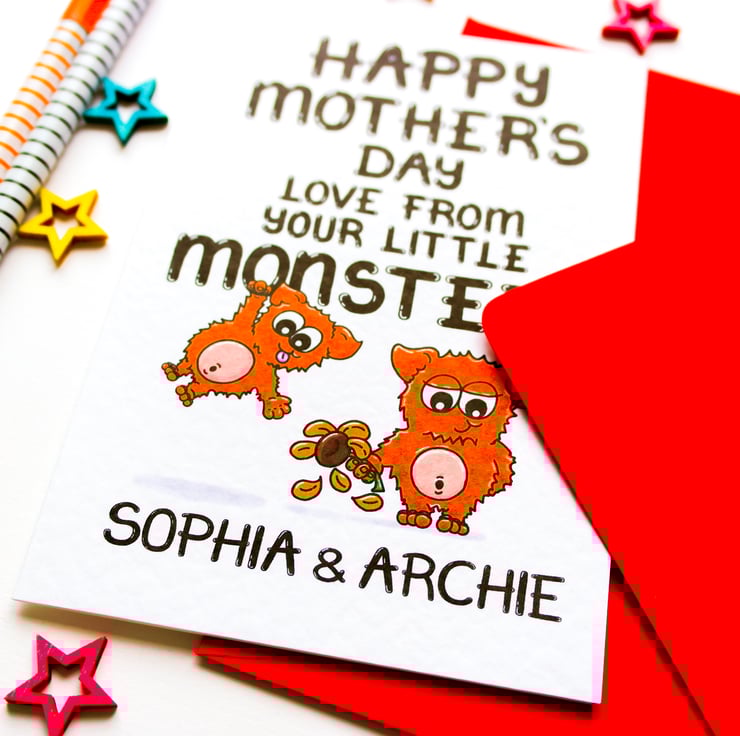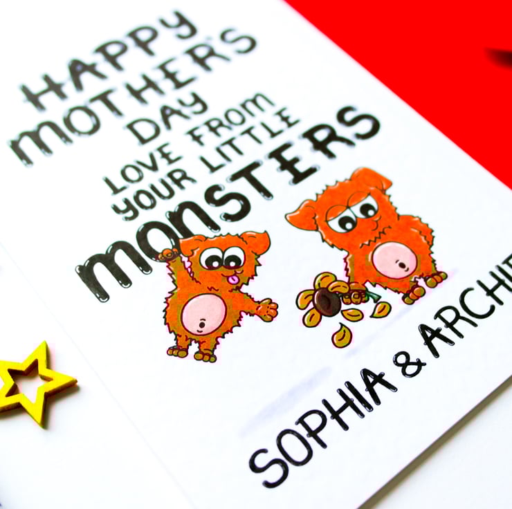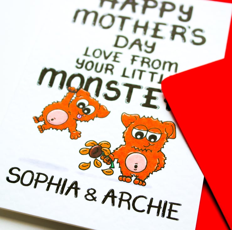 Greeting on front: HAPPY MOTHER'S DAY LOVE FROM YOUR LITTLE MONSTERS (NAMES)