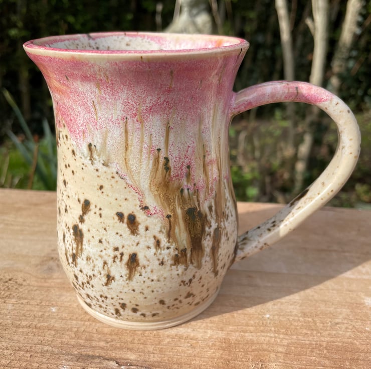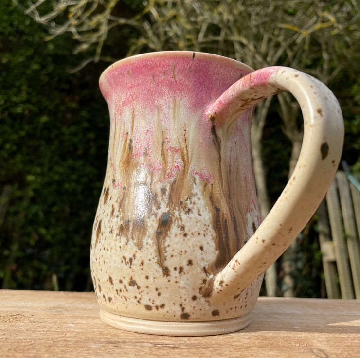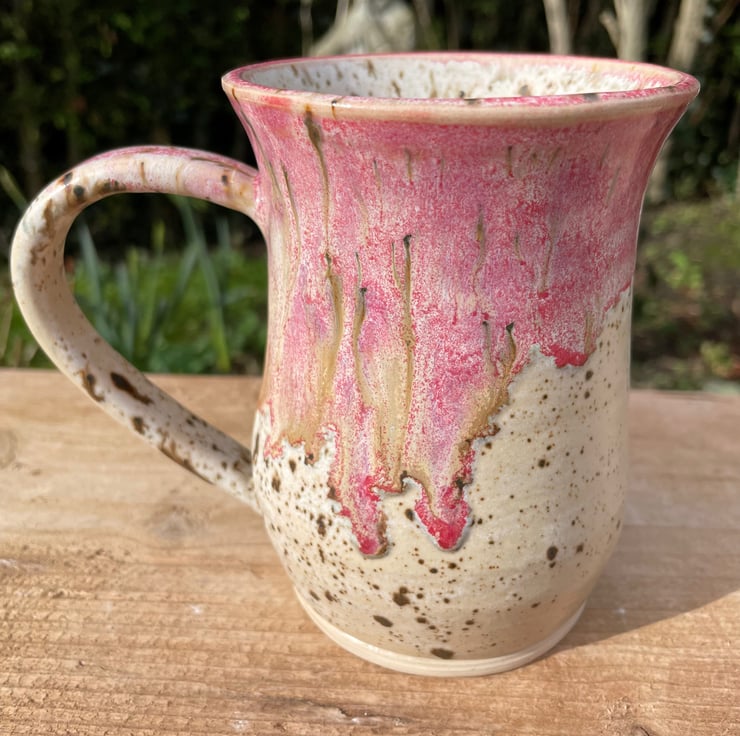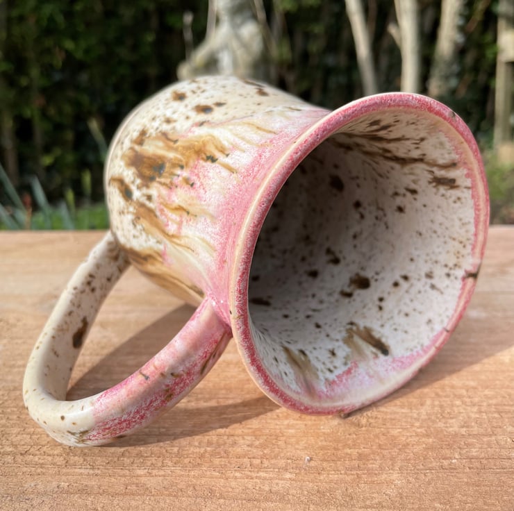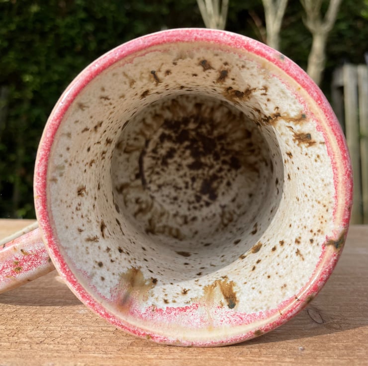 The mug was dried slowly once the handles were added over a few weeks. It was then fired to over 1000c, called a bisque firing. It was then glazed and fired again to over 1200c. This is when the magic happens and the glazes run into each making the individual look of the deceptively large Made With Mud mug.