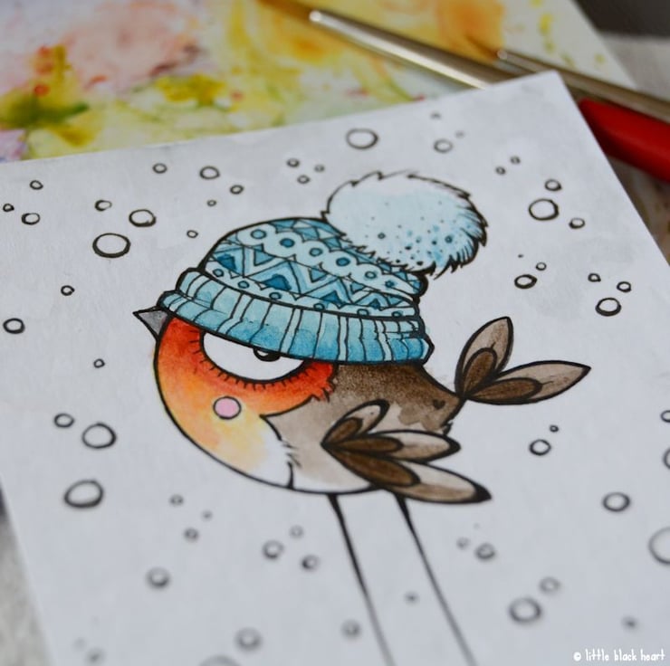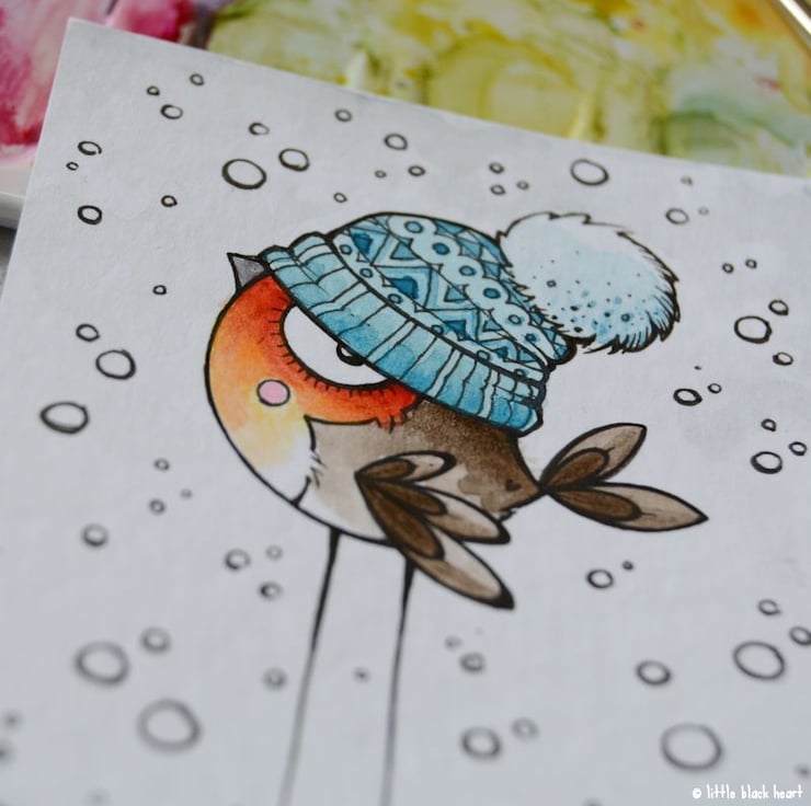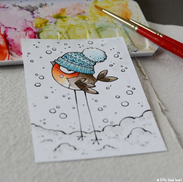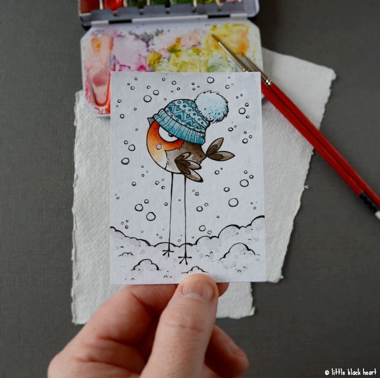 original artwork in artists pens and watercolour paints, on textured white 300gsm cardstock. drawn with a tiny 0.05 nibbed pen, and carefully painted with just the very tip of a tiny paintbrush.