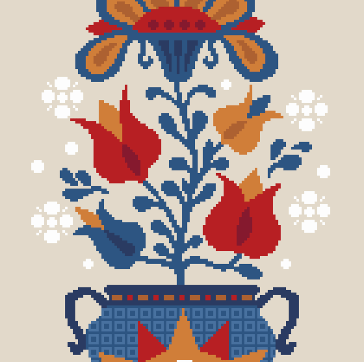 Cross Stitch pattern Flowers of Ephrata, Primitive Pennsylvania German American Fraktur Folk Art style chart, Vivsters PDF counted chart 097
