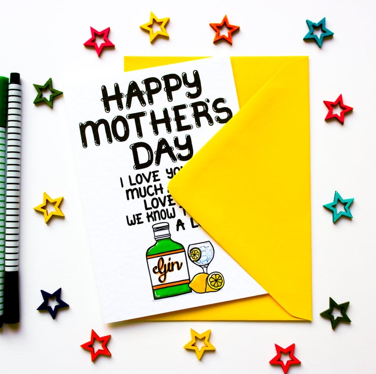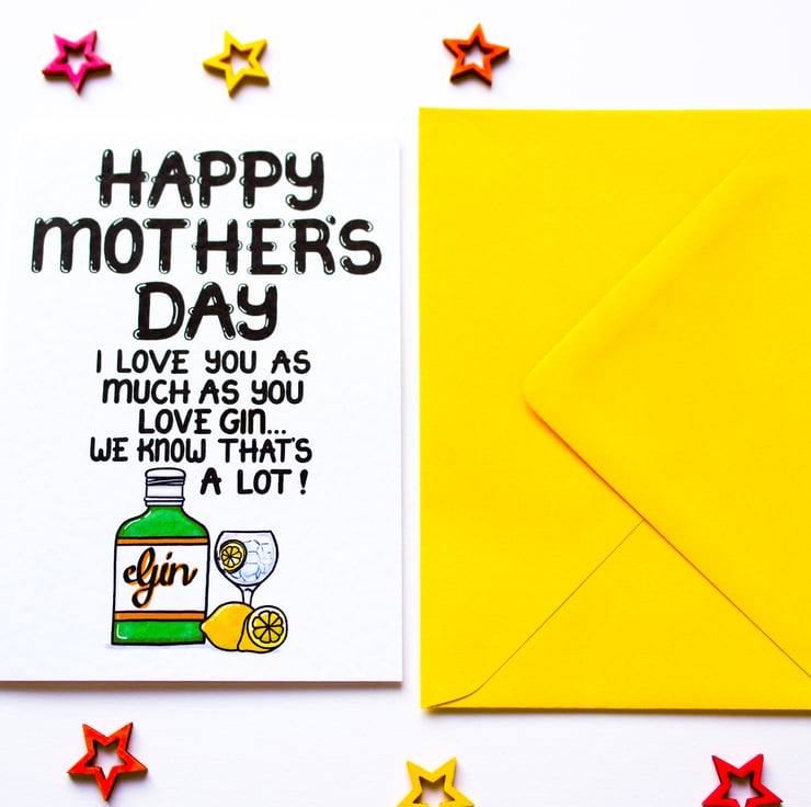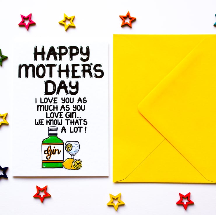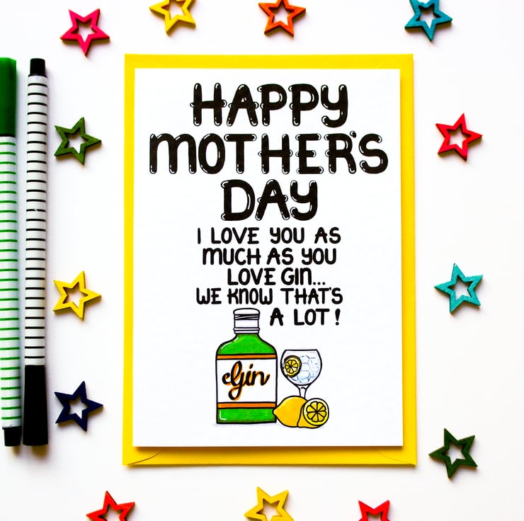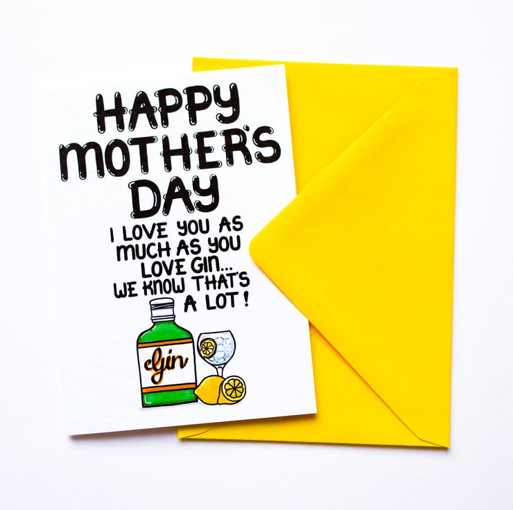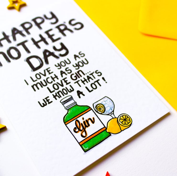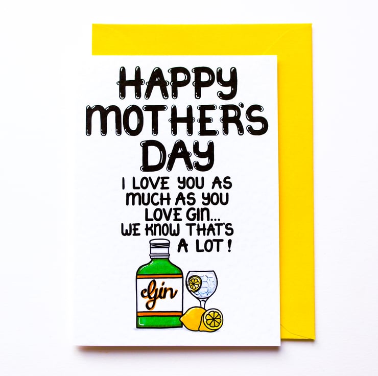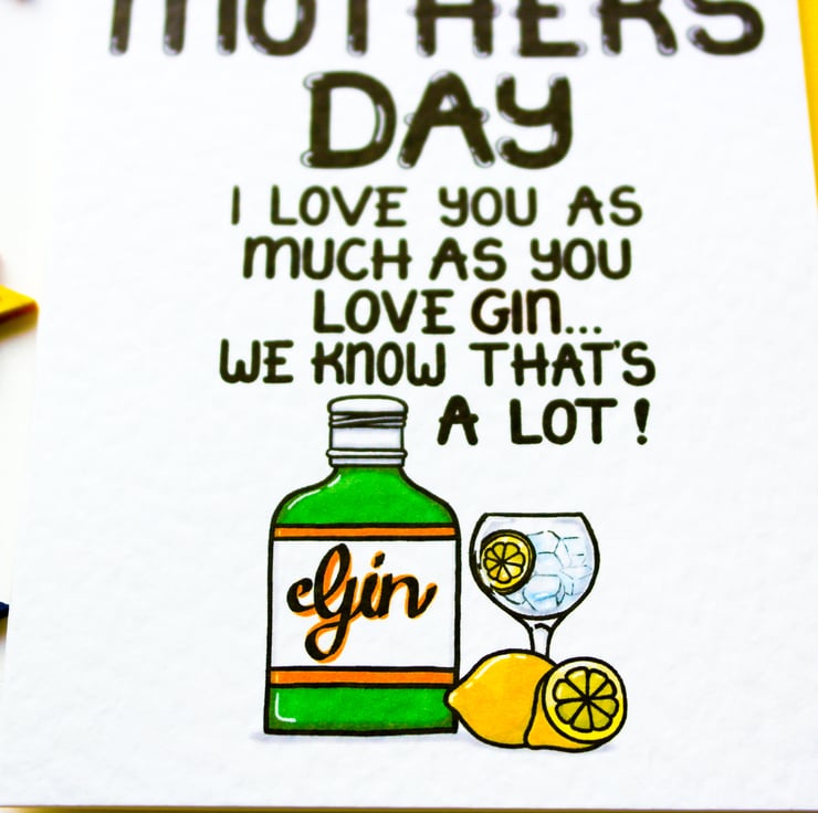Greeting on front: HAPPY MOTHER'S DAY I LOVE YOU AS MUCH AS YOU LOVE GIN... AND WE BOTH KNOW THAT'S A LOT!