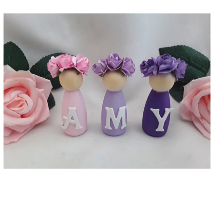 Personalised Wooden Peg Dolls, New Baby Gift, Personalised Nursery Decor