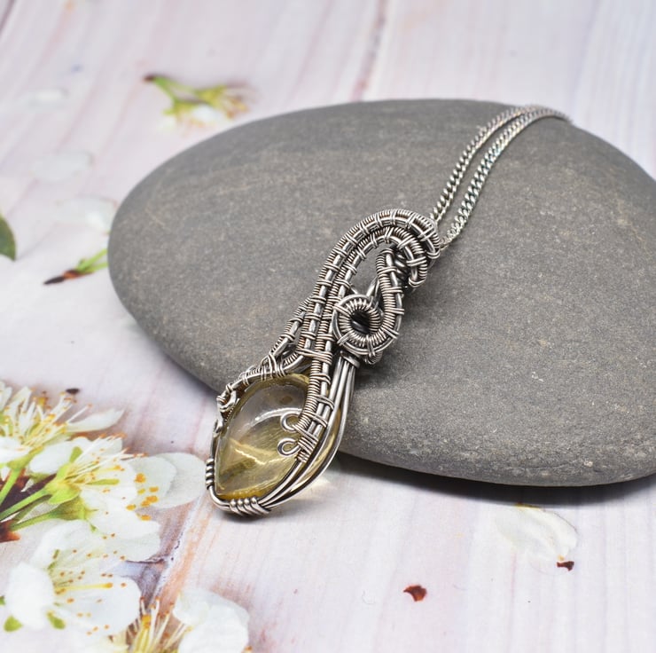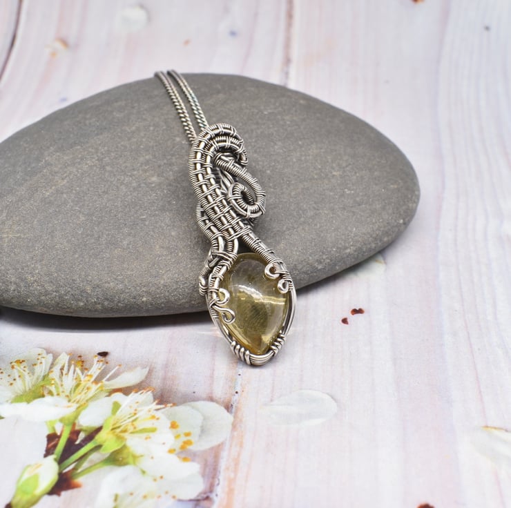 Citrine is the birthstone for November and I have wrapped and woven around this lovely yellow stone using sterling and fine silver wire to make this stunning pendant which hangs from an 18 inch sterling silver chain with a handmade clasp.