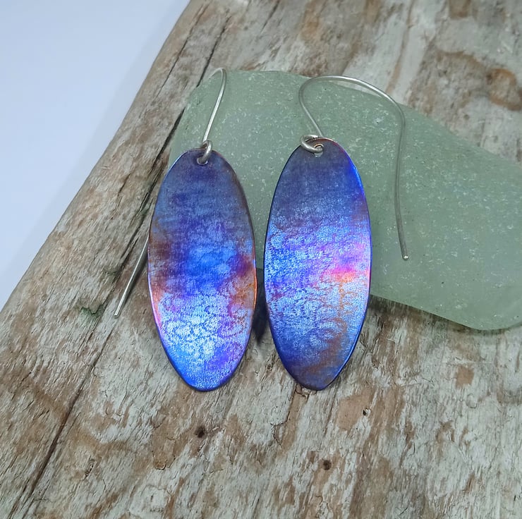 These beautiful lightweight titanium earrings display an attractive range of shades which really come to life when the light hits them.