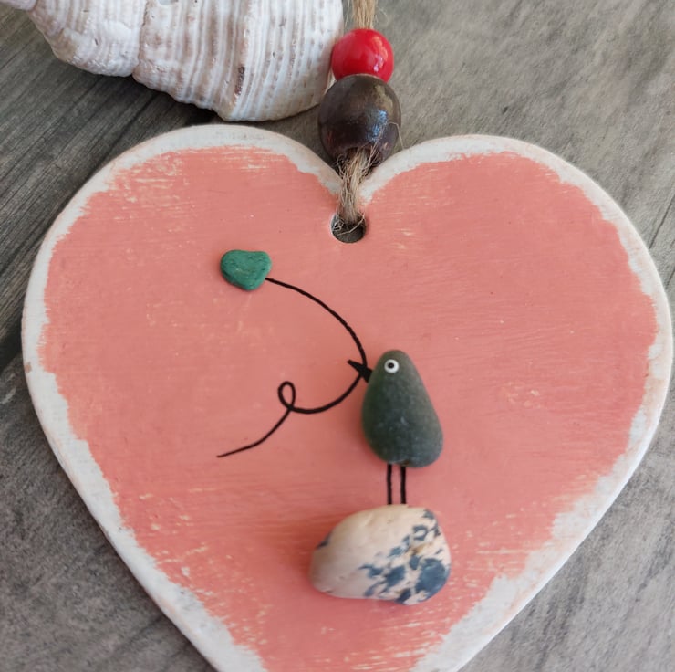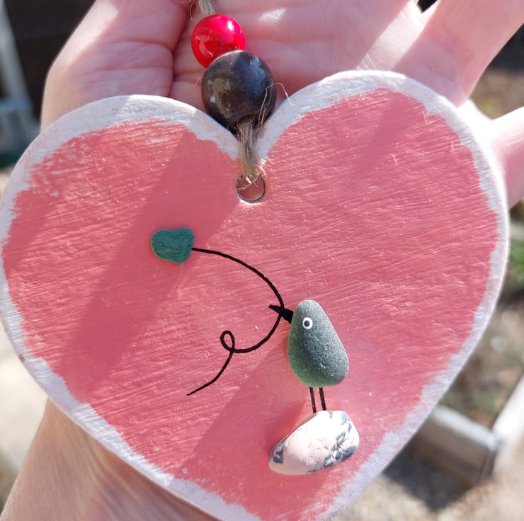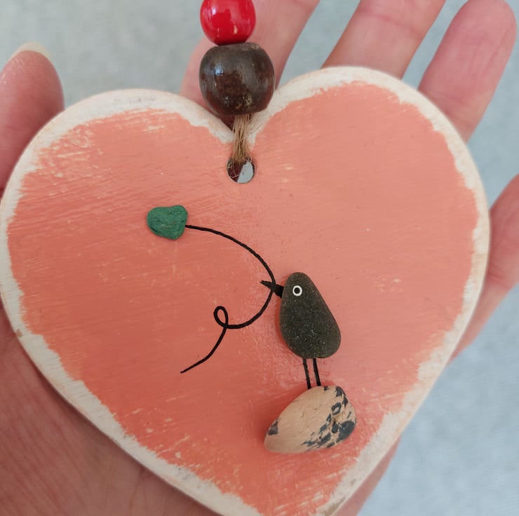 The bird is set on a hand painted heart which is crafted from sturdy hardboard to give you a more sustainable option over wood or frames and has been painted with acrylic and varnished to give a super smooth finish.