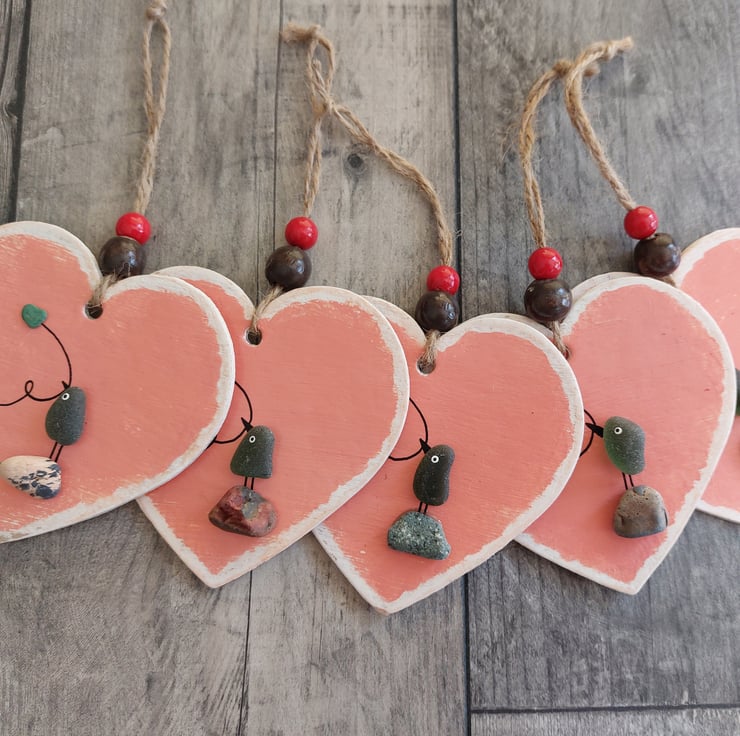 The heart measures 9cm x 9cm (drop from top to bottom is 18cm), is supplied with twine for hanging and finished with a little wooden beads.