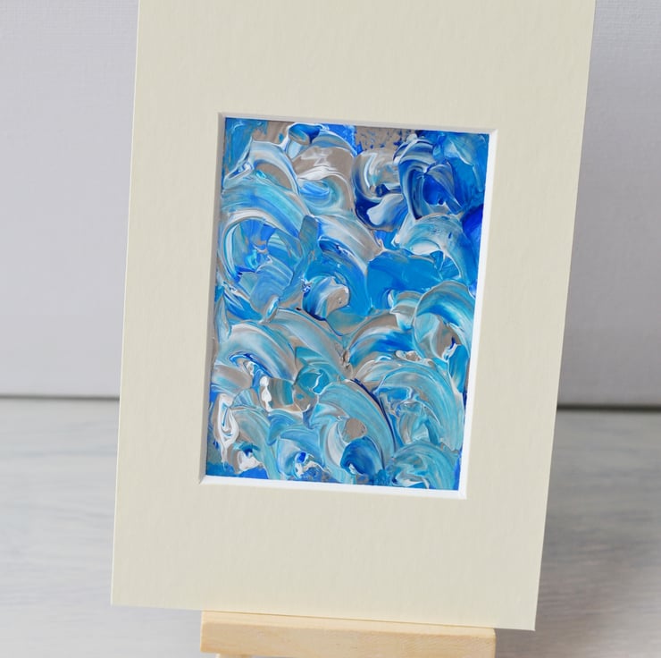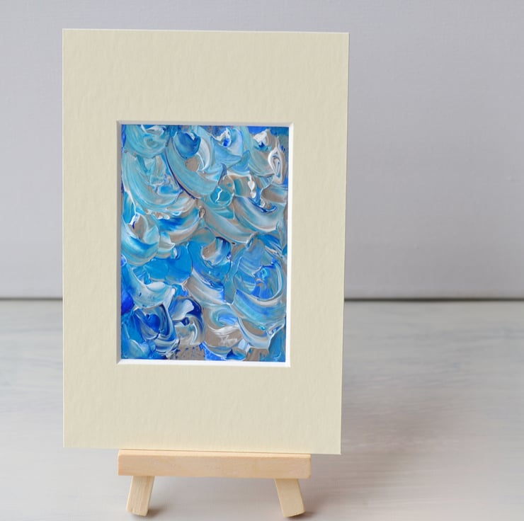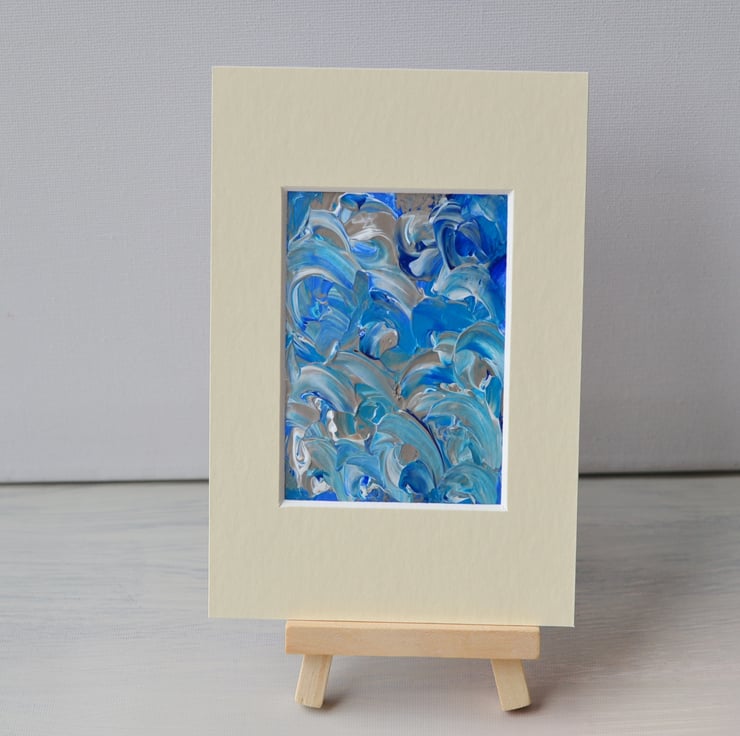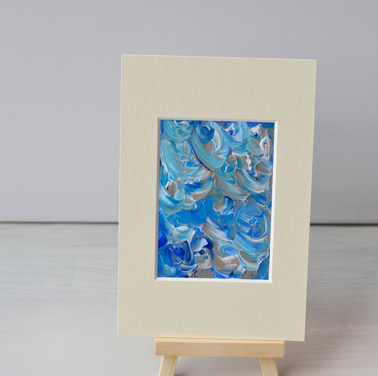 Aceo painting in different shades of blue, white and grey. Painted on quality acid free card. Painted using quality acrylic paints. Size is 4" x 6" mounted in an ivory mount. - Affordable art. Keep out of direct sunlight due to fading and away from water.
