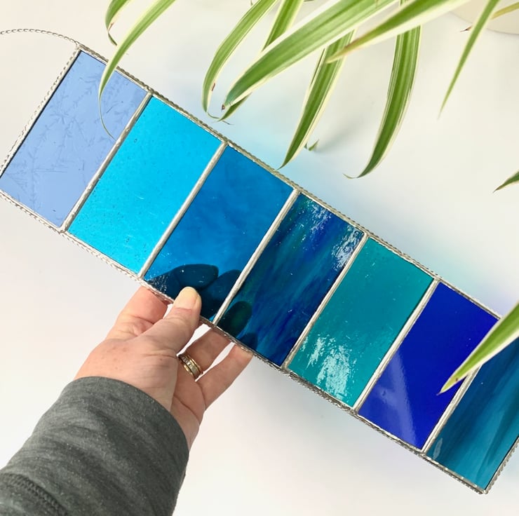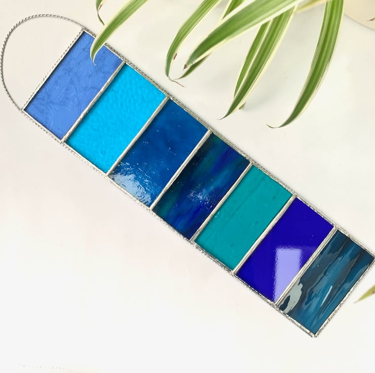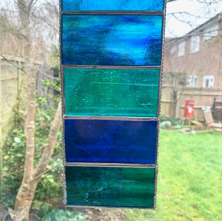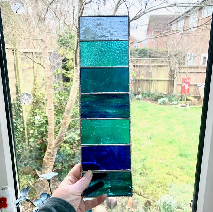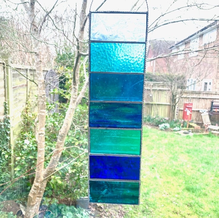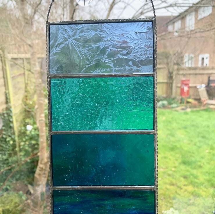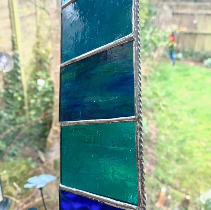 This has been made using 7 slices of blue and turquoise stained glass which have some lovely textures.