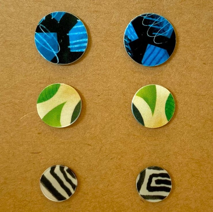 Multicoloured recycled plastic stud earrings - set of 3 pairs - prints