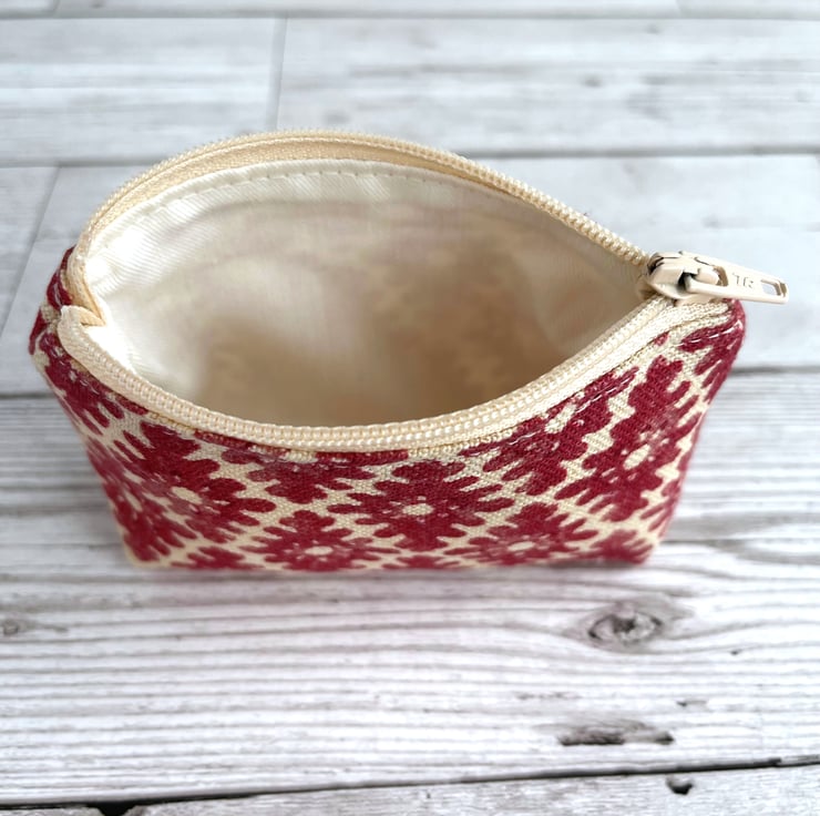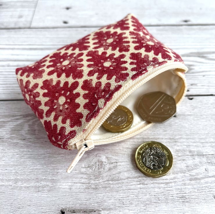 This useful little coin purse will fit into the smallest of handbags but is just large enough to hold cash and a bank card and would also hold a lipstick. The purse, with its attractive and unusual pattern, would make a lovely gift.