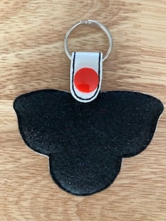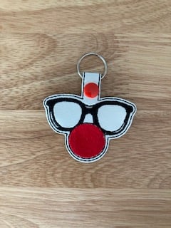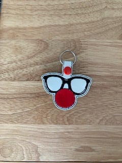 Red nose/glasses keyring made from vinyl and backed with felt.