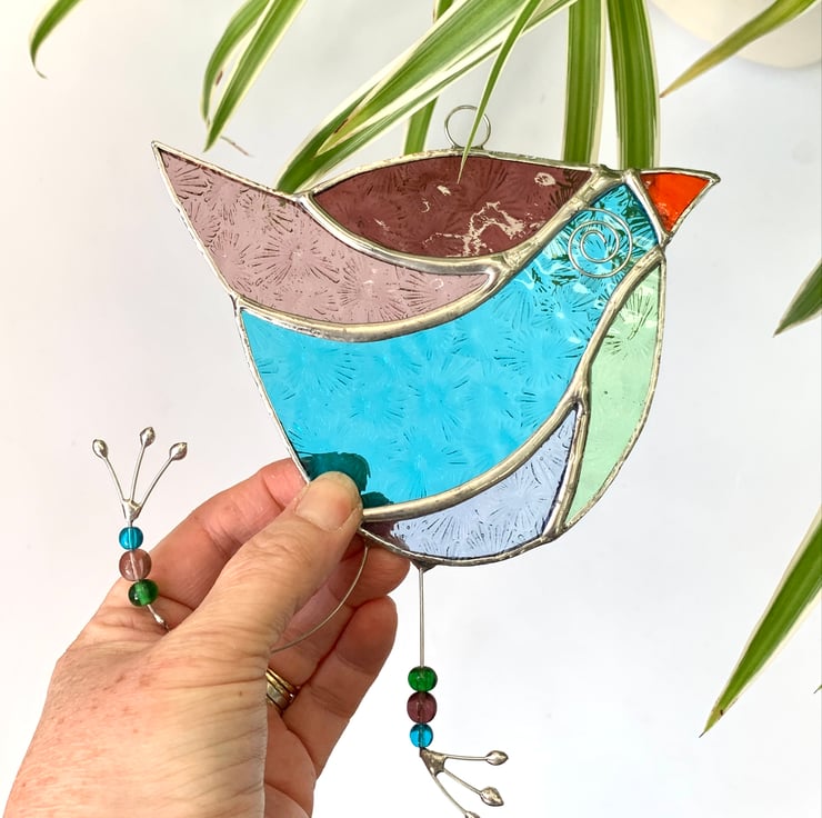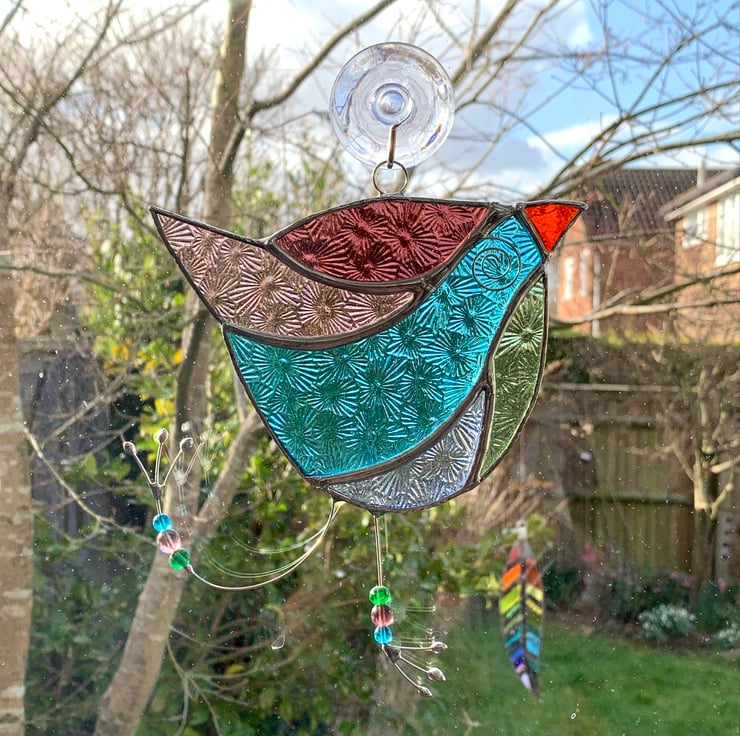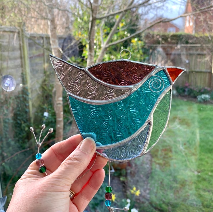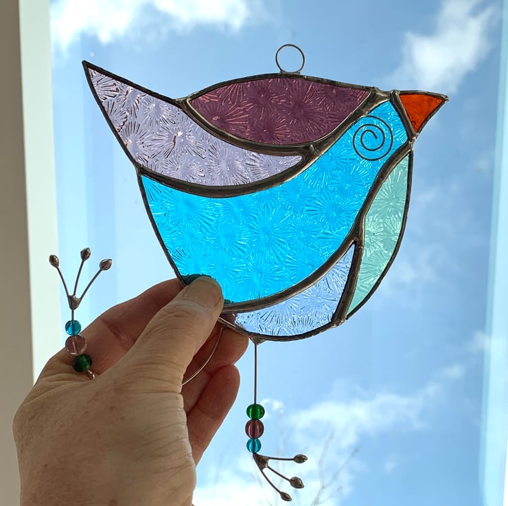 This fun bird suncatcher has made out of beautifully coloured stained glass. It’s really quite quirky and fun making a great gift for all ages.
