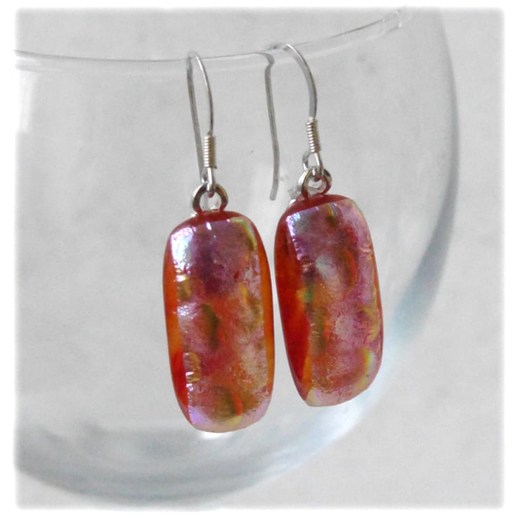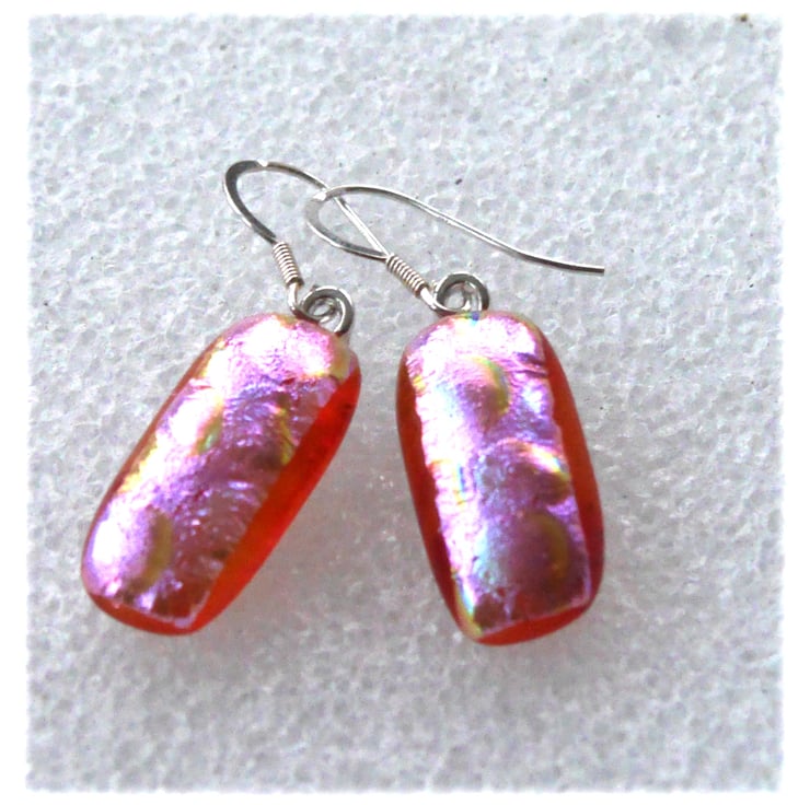 I've taken several photos of the earrings to try to show you the colour which changes in the light. this is a feature of wonderful dichroic glass.