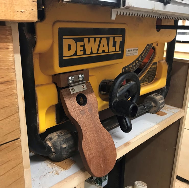 I am a Hobby Woodworker and Wood Turner here in the UK. I have a Dewalt DW745 Table saw and in the UK this model does not have a switch on it that is easy to get to when you want to shut off power. I try a few designs and eventually came up with my "Flappy Paddle" which is currently made from Hardwood and is easy to fit to the saw above the current switch with two 5mm bolts. To turn off the saw you simply train you knee where the paddle is and you are able to turn off the saw without taking your eyes off the work. Currently over 70 DW745 users have these fitted, and I am proud to have been able to bring this product to woodworkers at an affordable price...Thank you for reading also thankyou to Keith Brown for featuring the Flappy Paddle on his YouTube channel. https://www.youtube.com