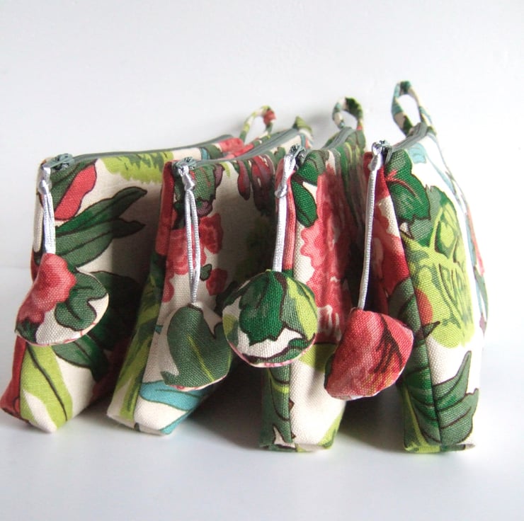 I bought this beautiful piece of vintage Sanderson from the York Car boot last summer, and I have made it into a collection of cosmetic bags. Now is the season for it to shine. It has washed beautifully, and I love its unusual flowers and colour combinations.