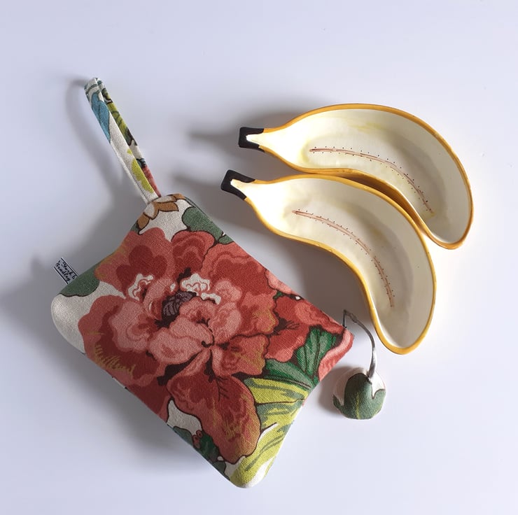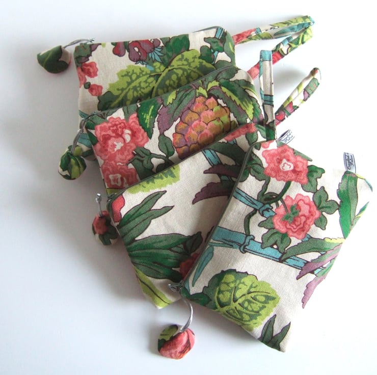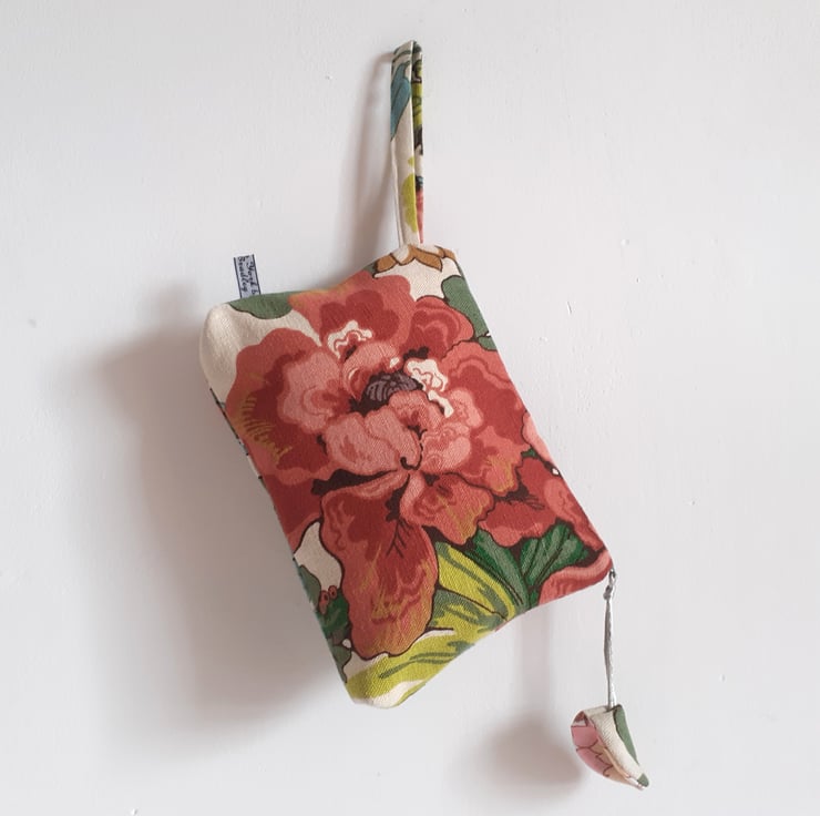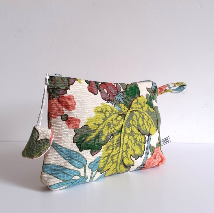 This pretty little vintage fabric clutch bag is perfect for a summer wedding. It will also double up as a practical zip up bag to carry small amounts of toiletries for a weekend away. Made from an unusual vintage Sanderson print, it has a vibrant tropical feel, with all the fun of summer to look forward to. It would make a lovely present for a vintage textile lover, or to carry to a summer wedding.