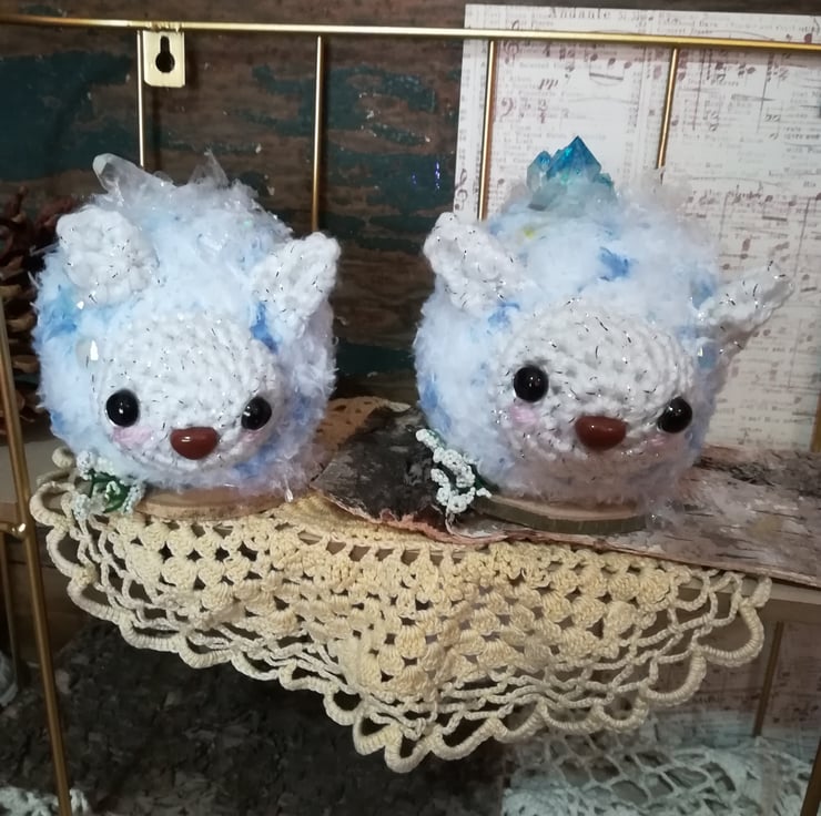 The snow wisps have a real / resin crystal on their heads.
