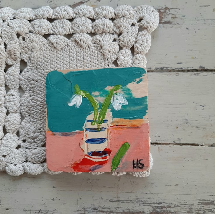 Small and very sweet. Hand painted on reclaimed wood, lightly varnished and with a hook on the back. Signed by artist hesta aka bodkincreates on Instagram. They come in a flat box in tissue x free UK postage