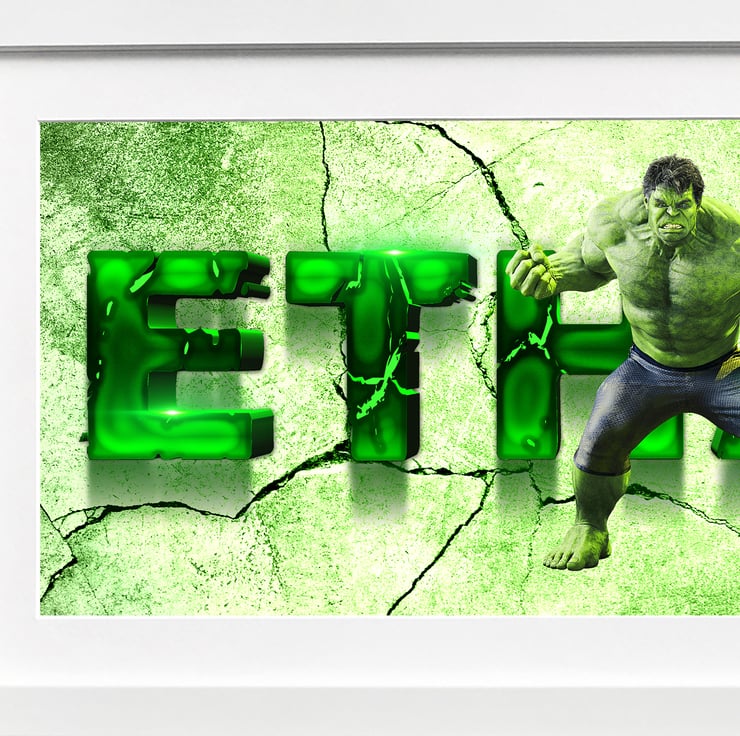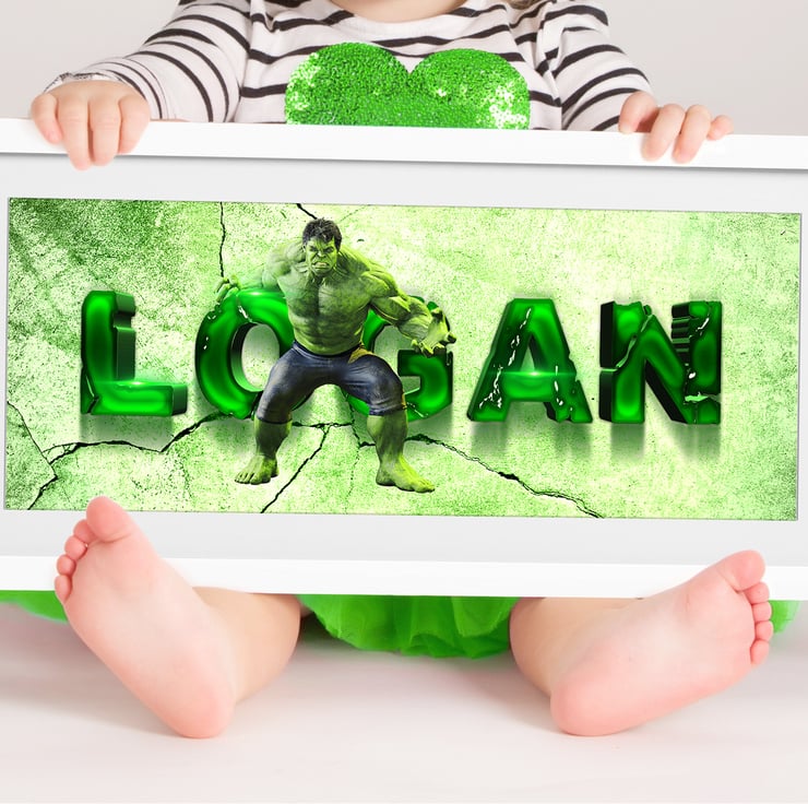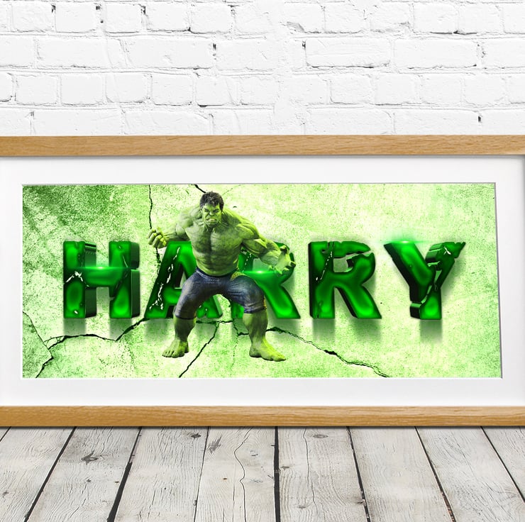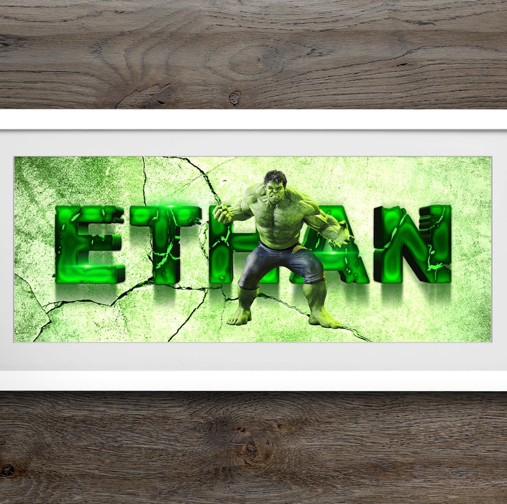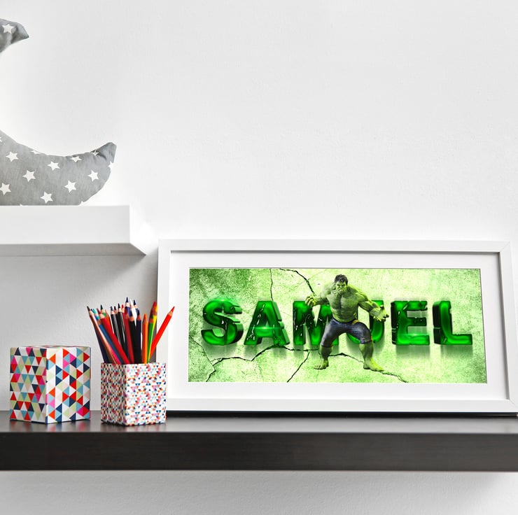 Hulk smash!! Amaze your family and friends with our Incredible Hulk Personalised Framed Name Print inspired by the big mean green machine. They are perfect for any little adventurer and make a bright and bold addition to any wall or as part of a themed bedroom design.