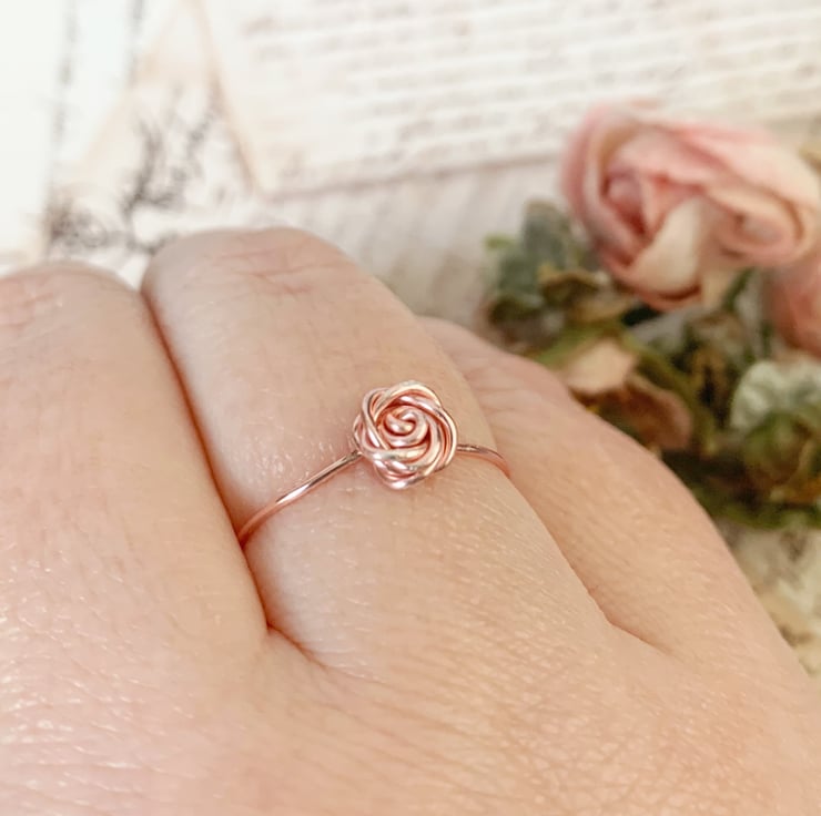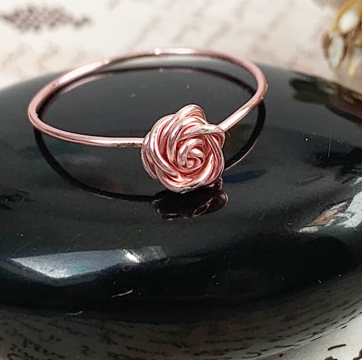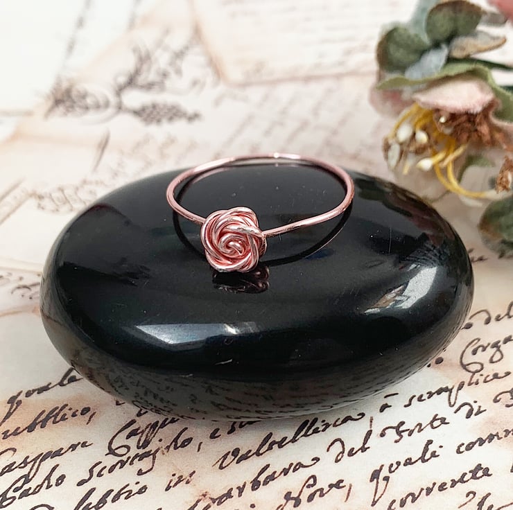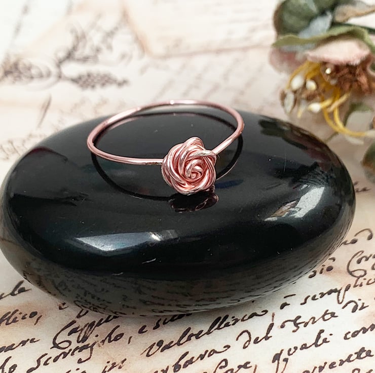 A beautiful delicate and dainty wire wrapped rose ring in a stunning rose gold coloured copper wire.