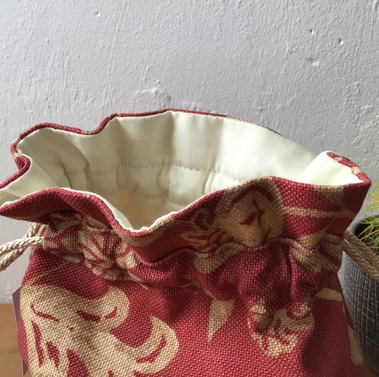 Handmade floral drawstring bag perfect for a gift bag, to keep cosmetics in or any other bits and bobs.
